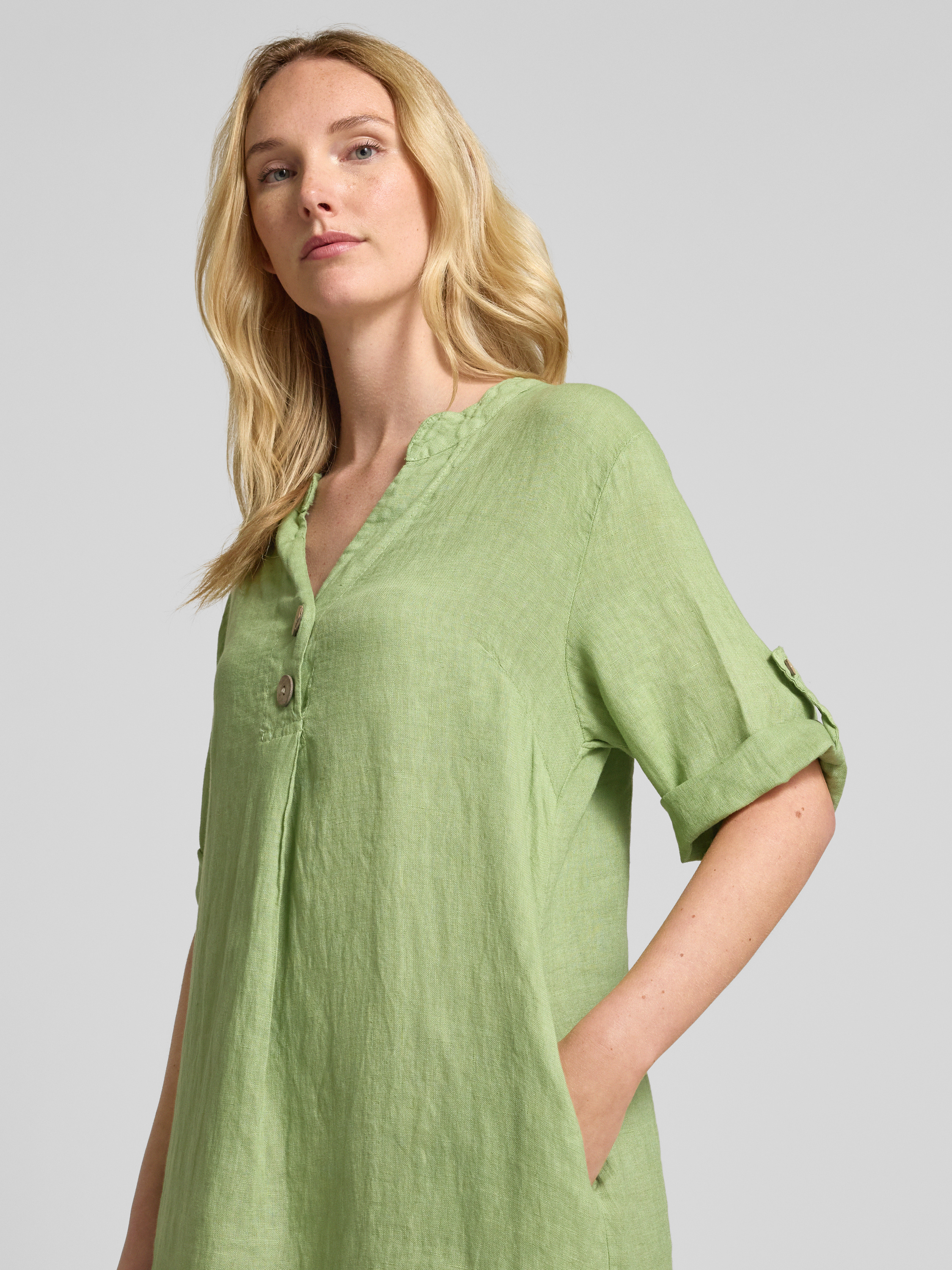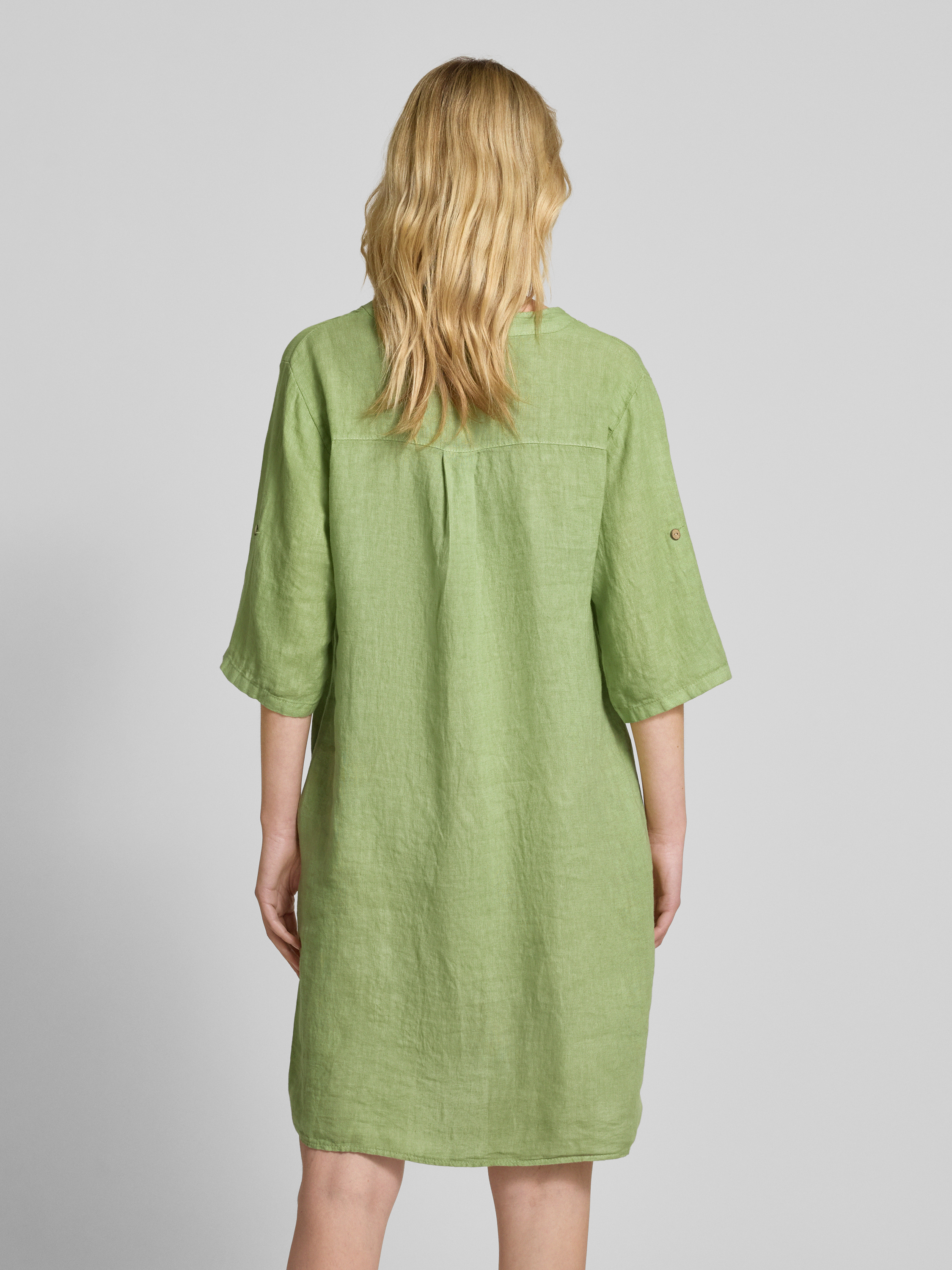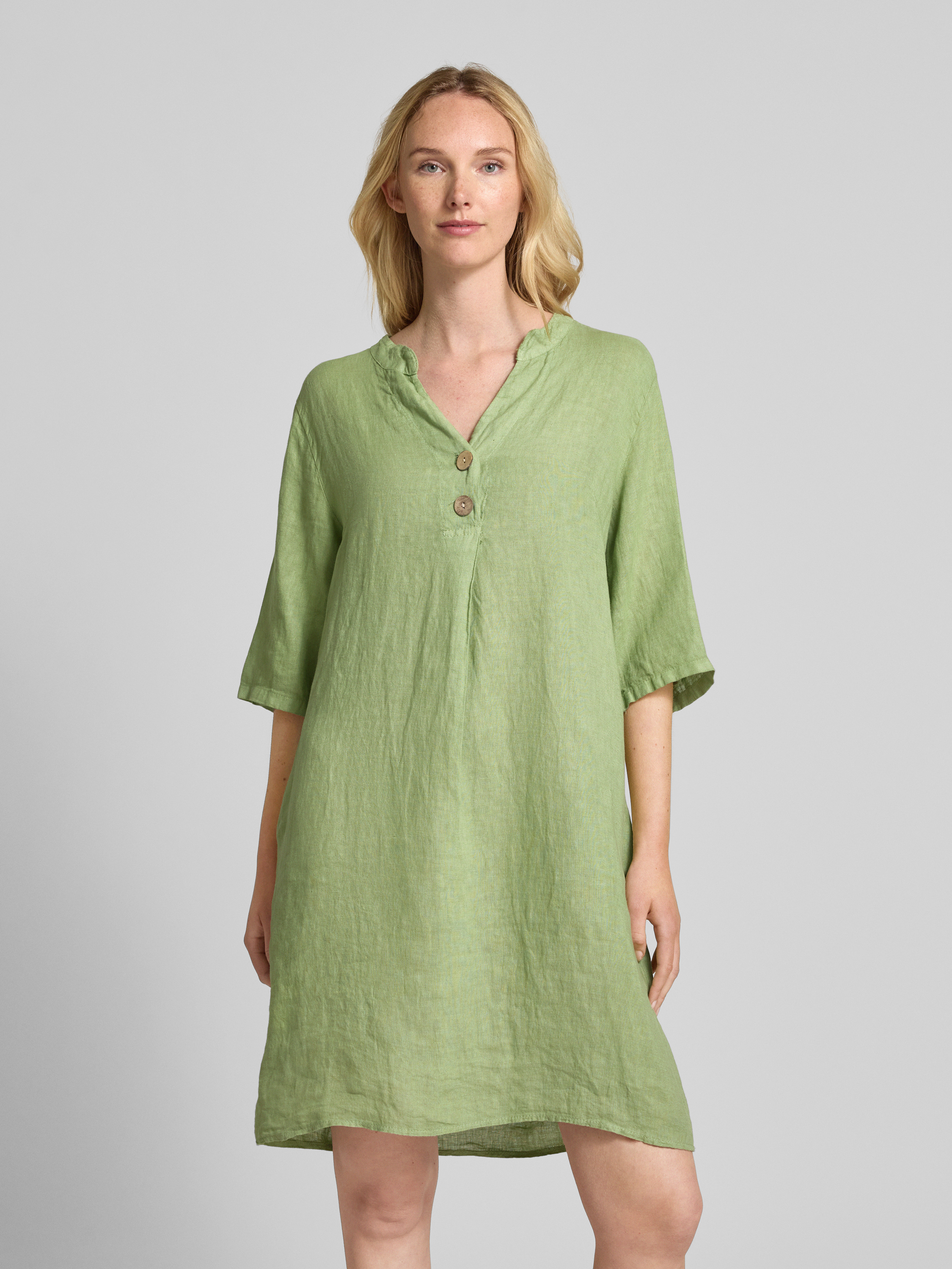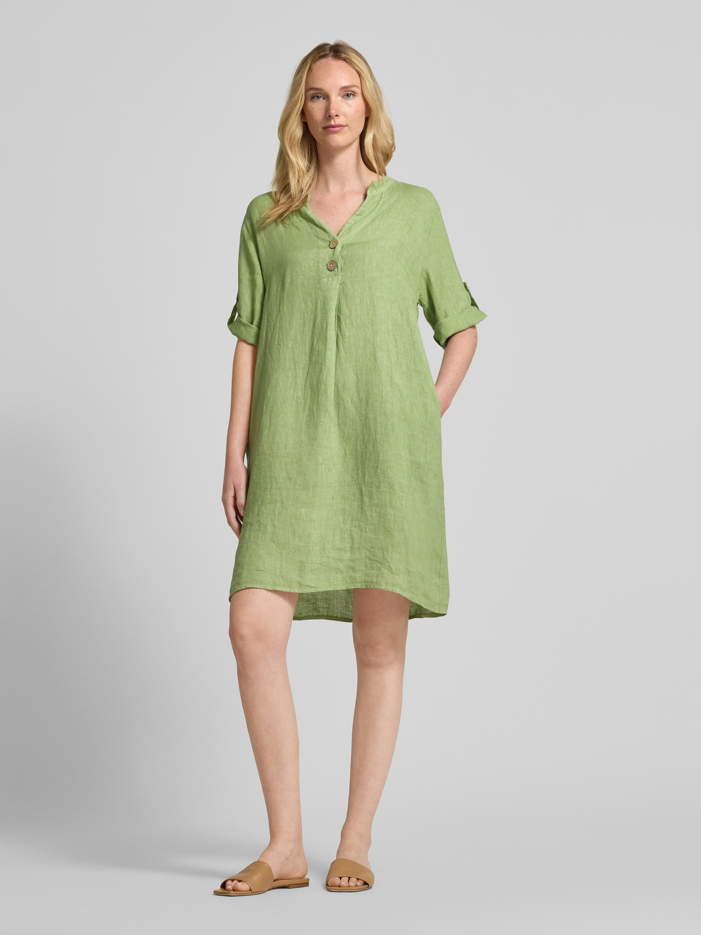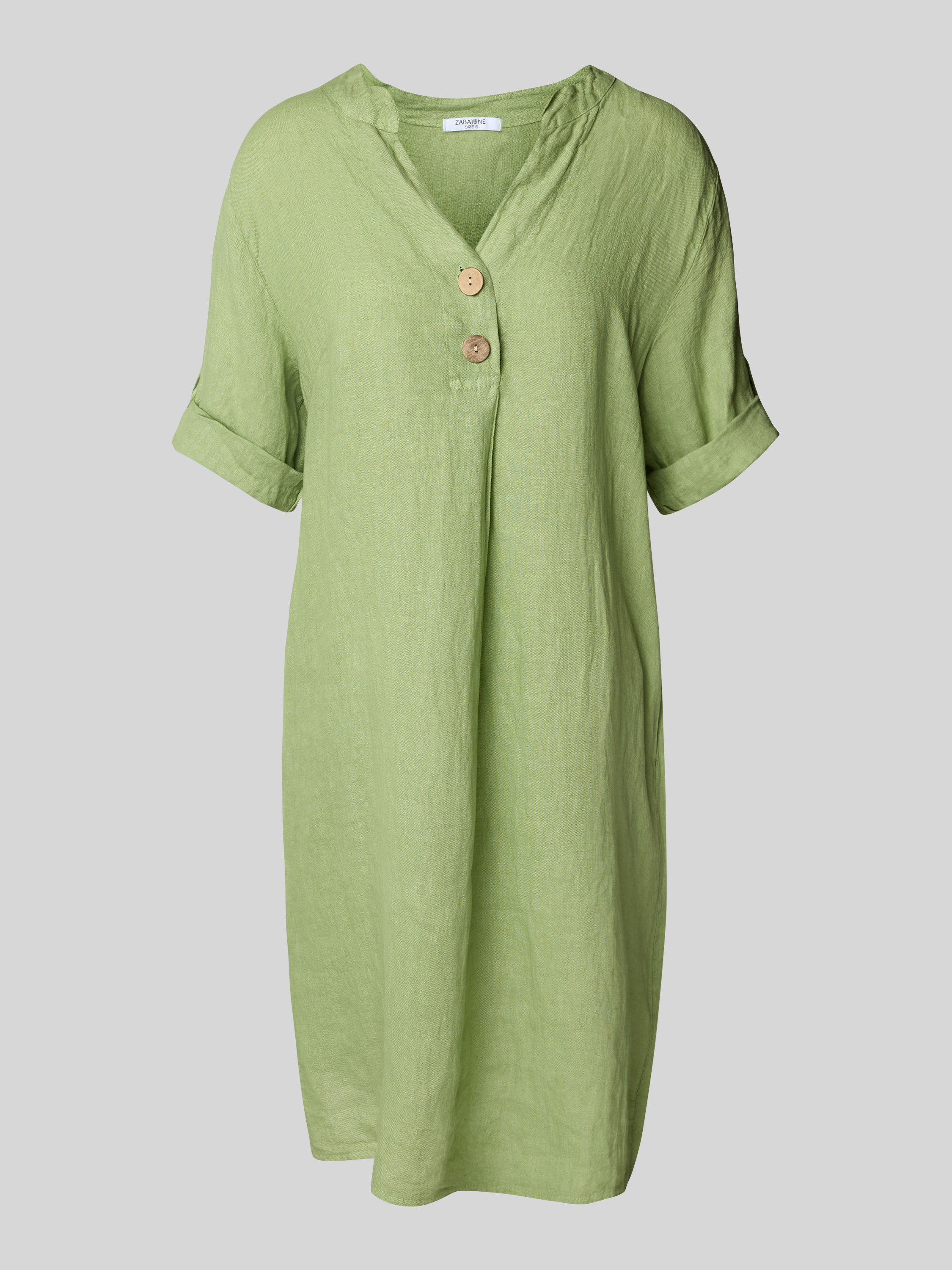 Knielange linnen jurk met V-hals in lichtgroen