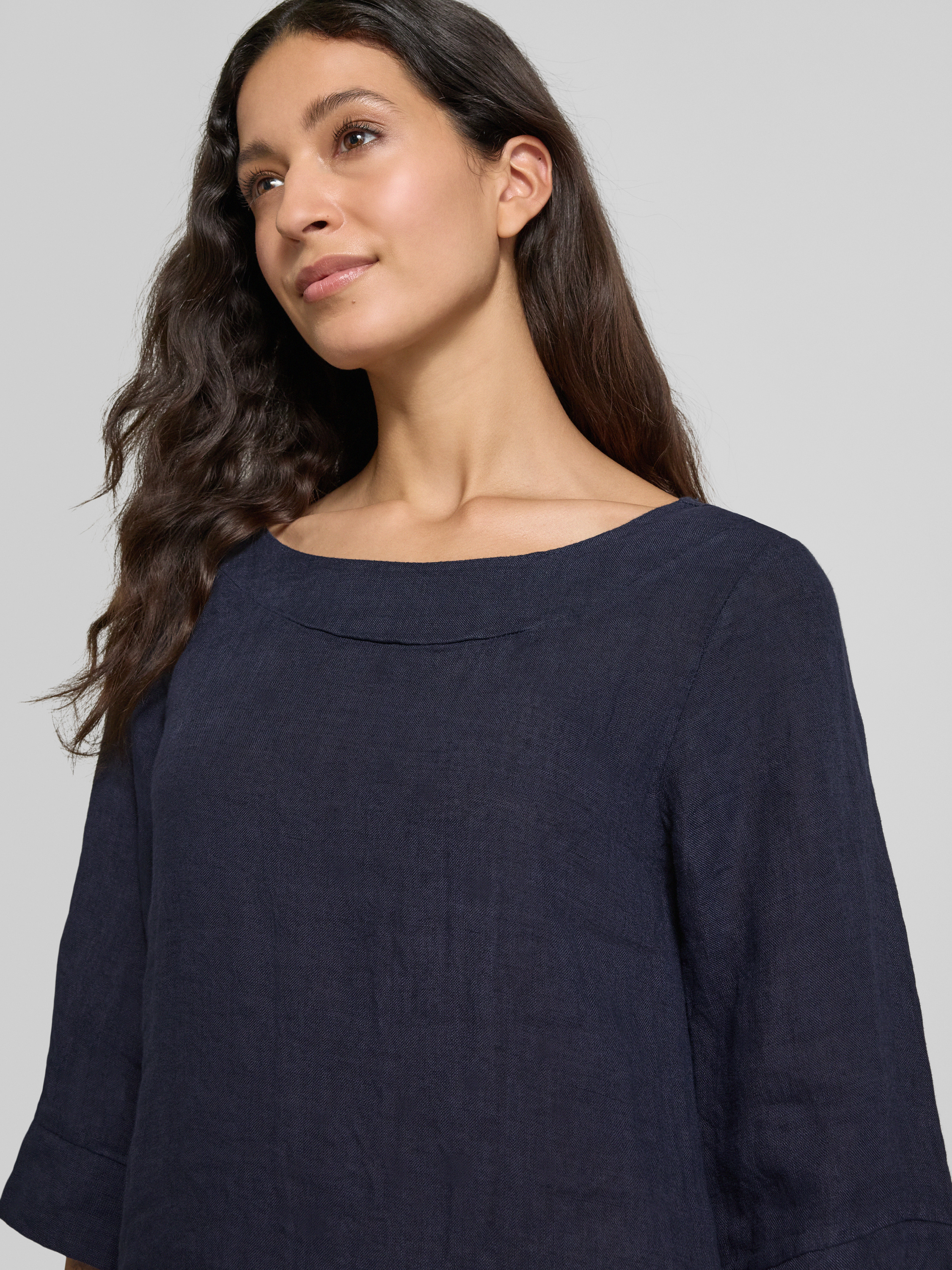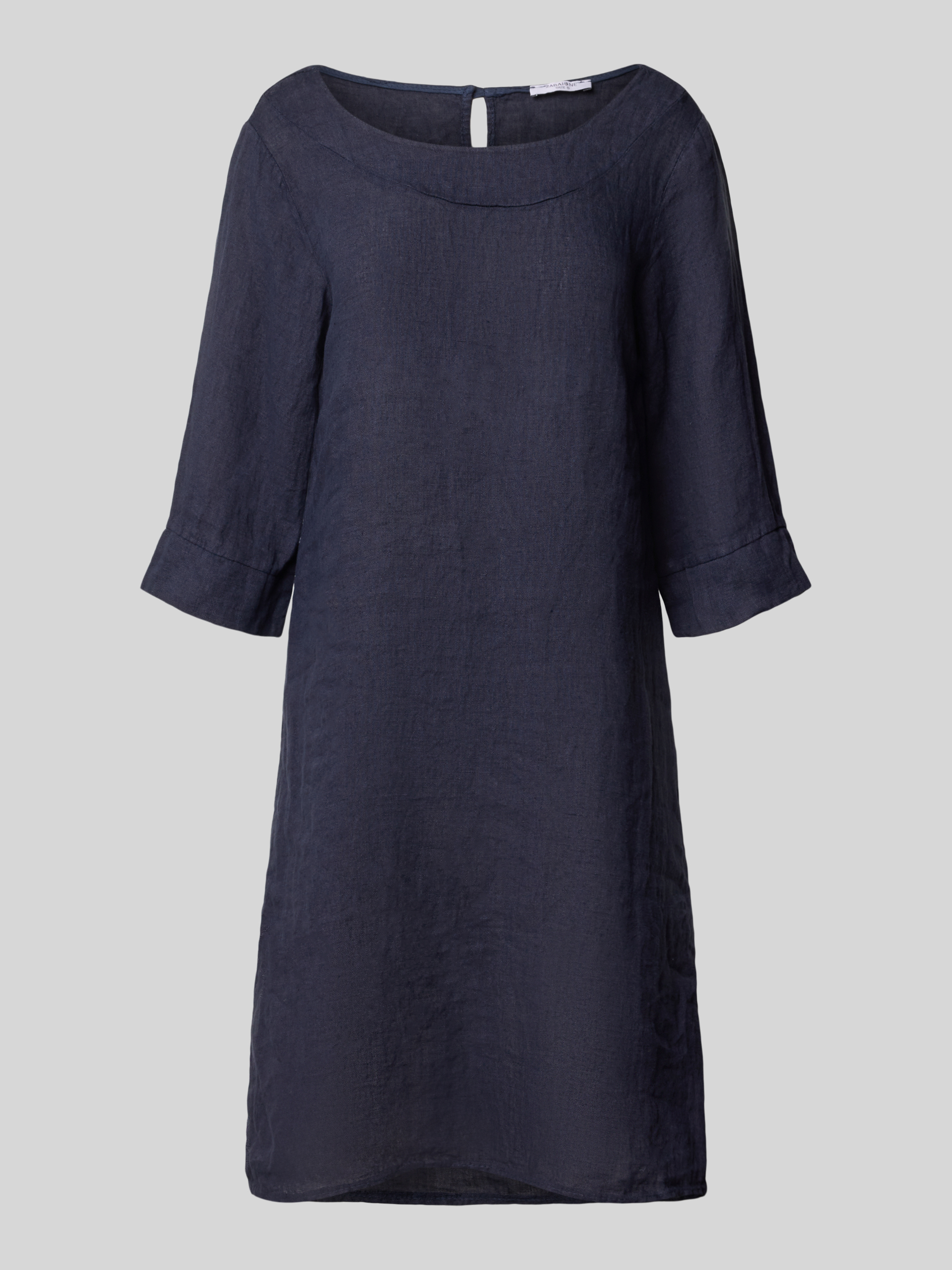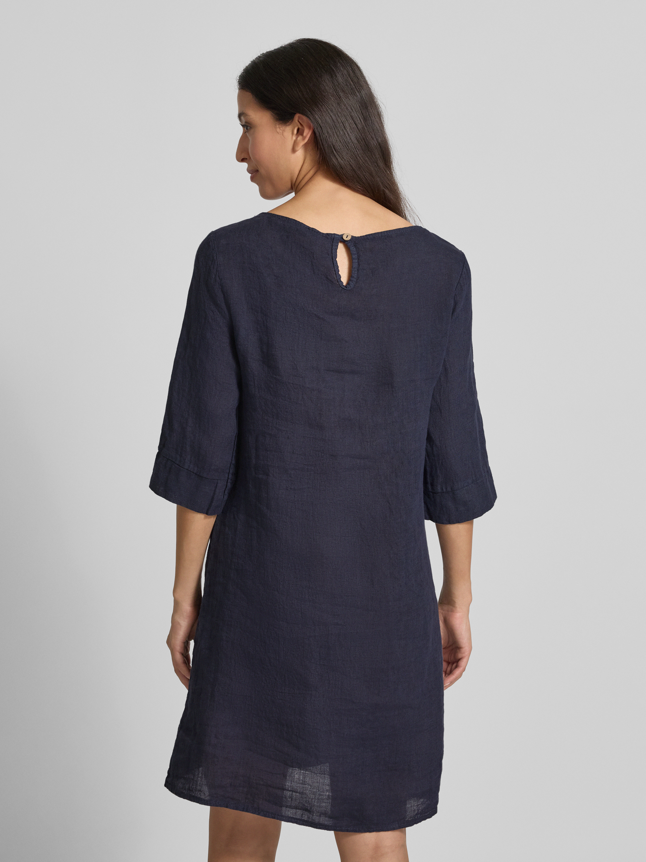 Linnen jurk met ronde hals, model 'Le44tizia in donkerblauw