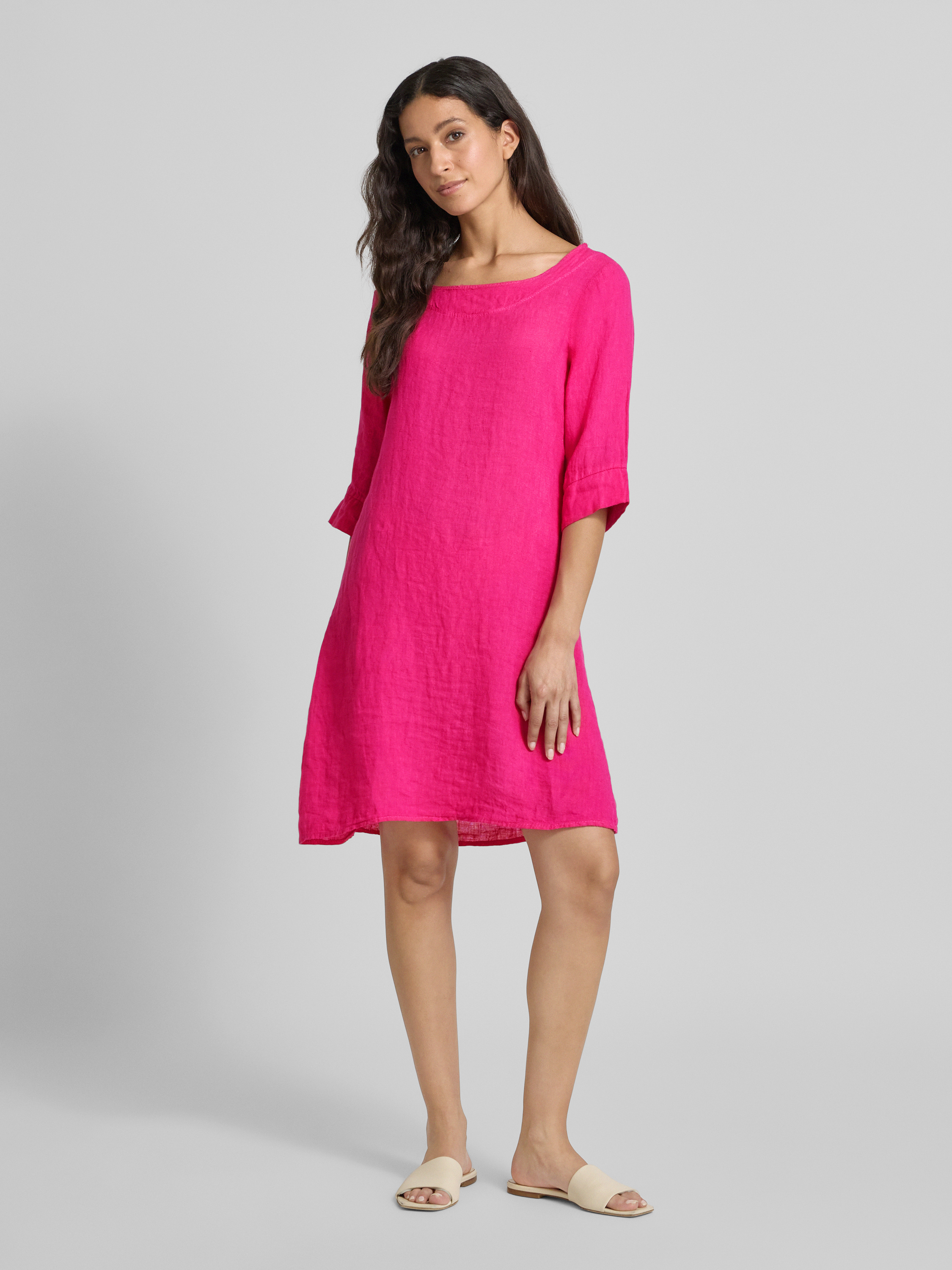 Linnen jurk met ronde hals, model 'Le44tizia in felroze