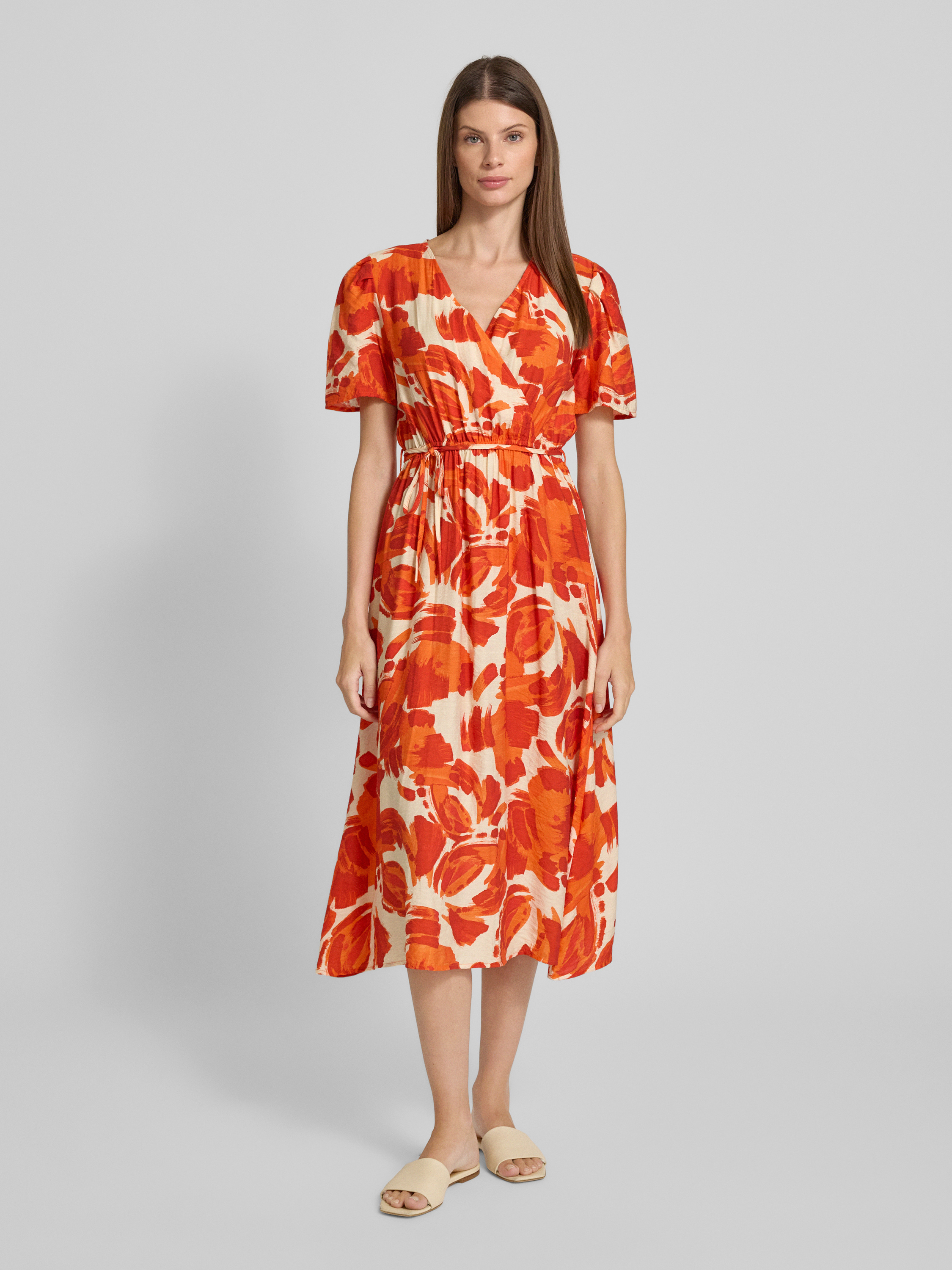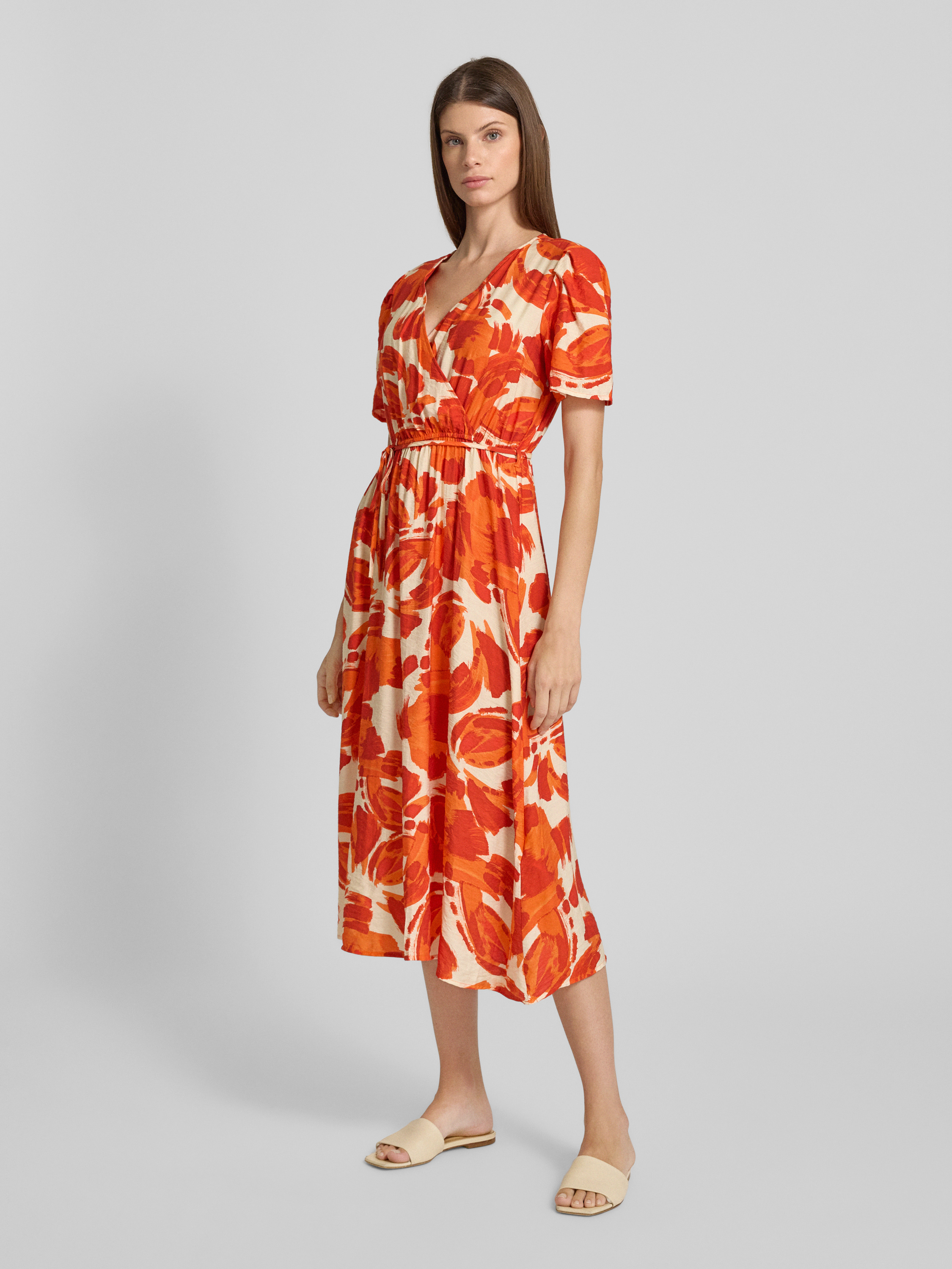 Midi-jurk in wikkellook in oranje