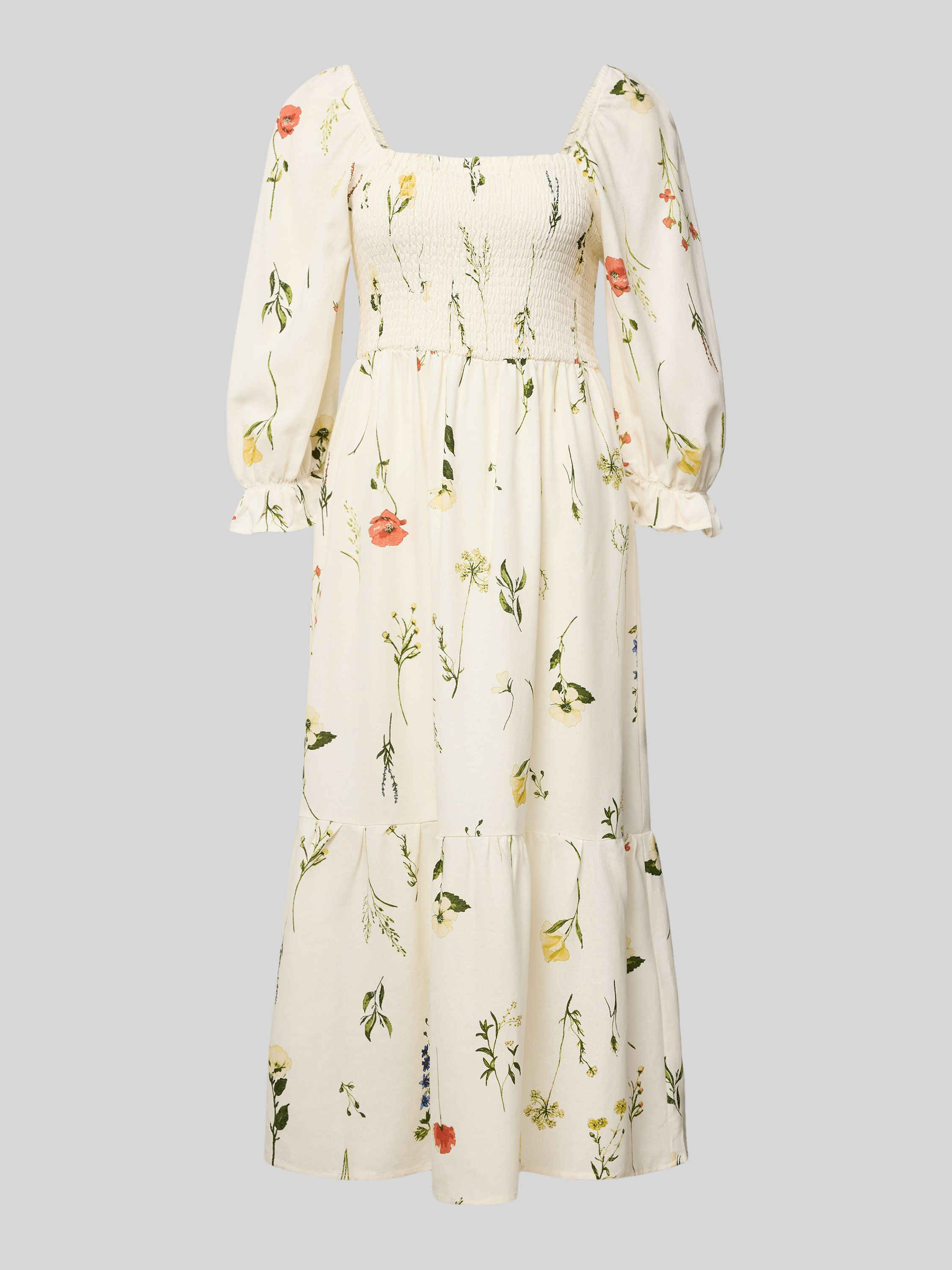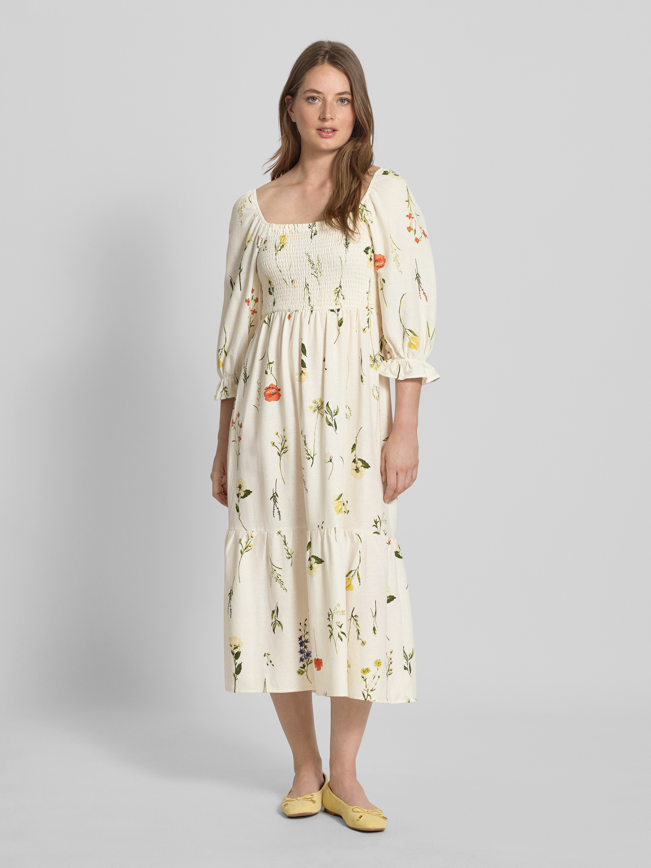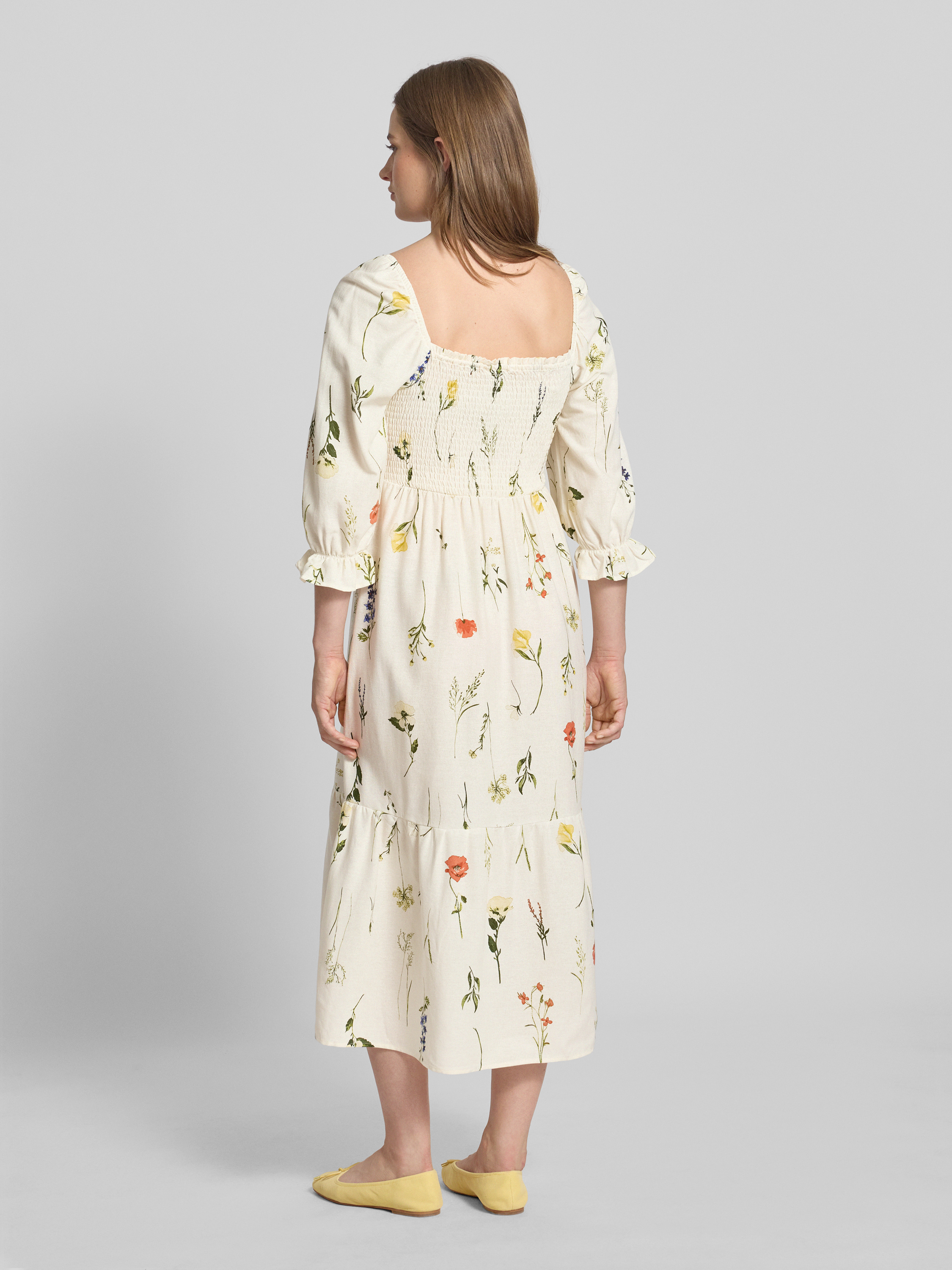 Midi-jurk van viscosemix met linnen, model 'Mi44ss' in offwhite
