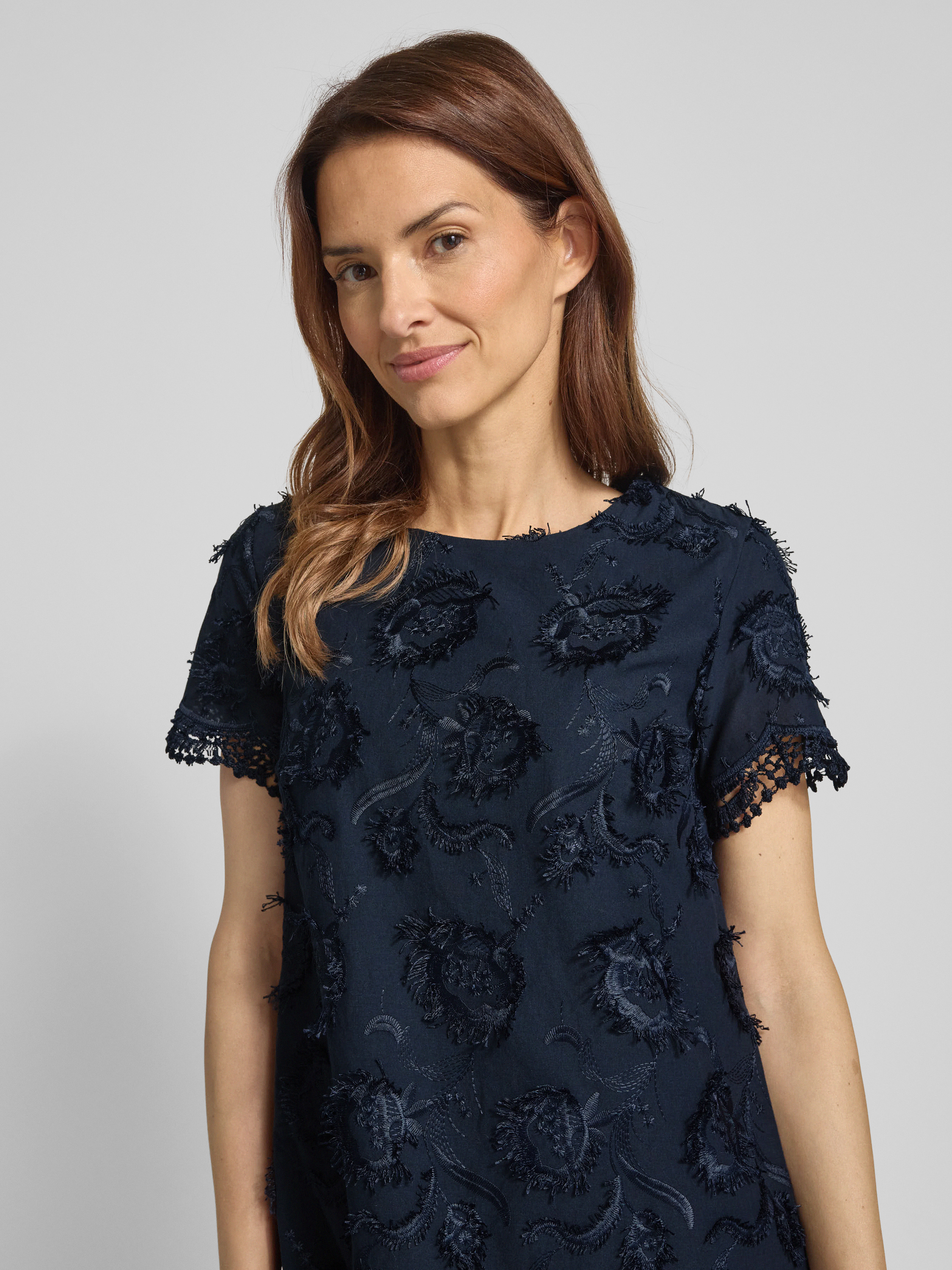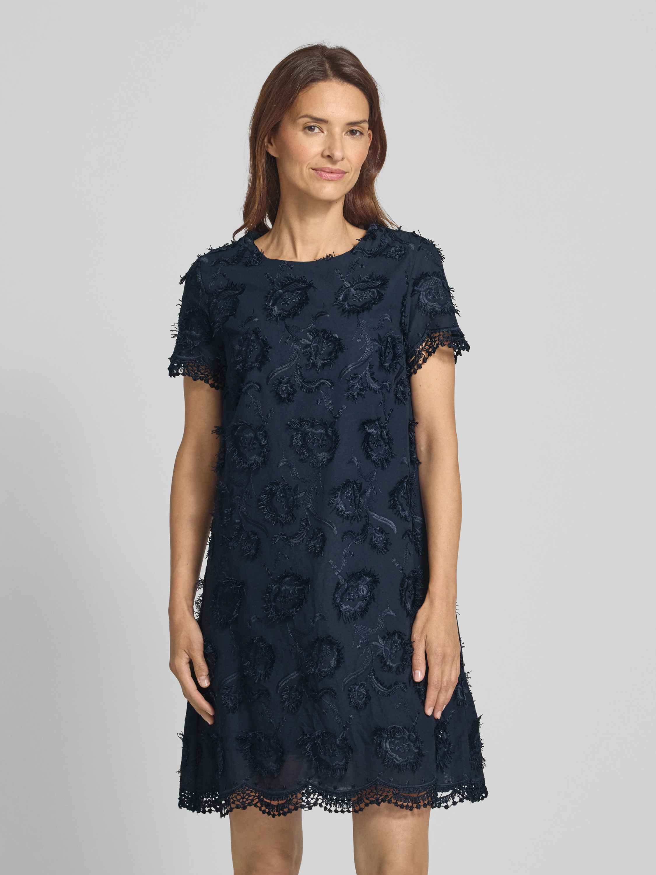 Mini-jurk met gehaakt kant in marineblauw