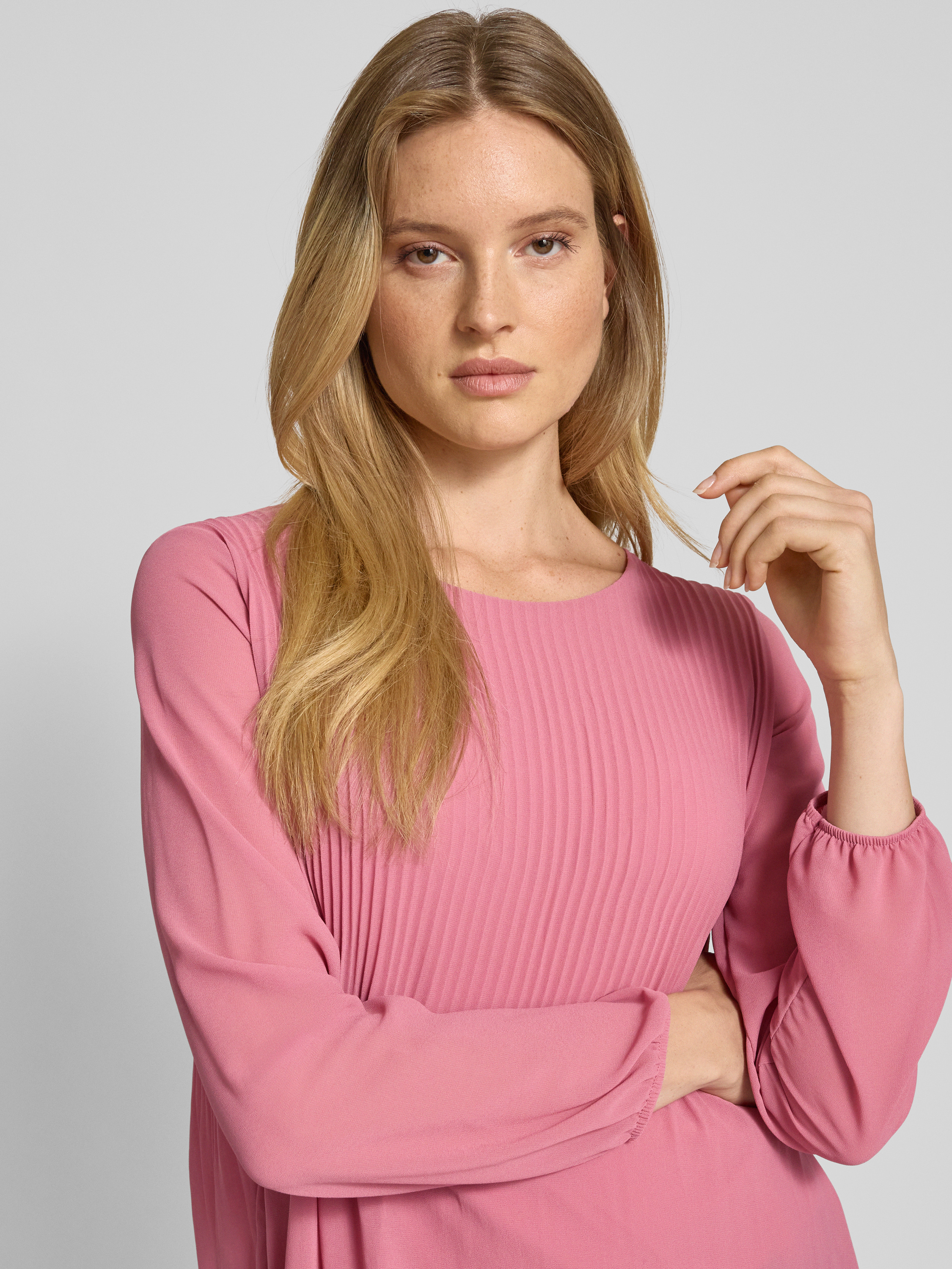 Regular fit blouse met plissévouwen, model 'Ev44a' in oudroze