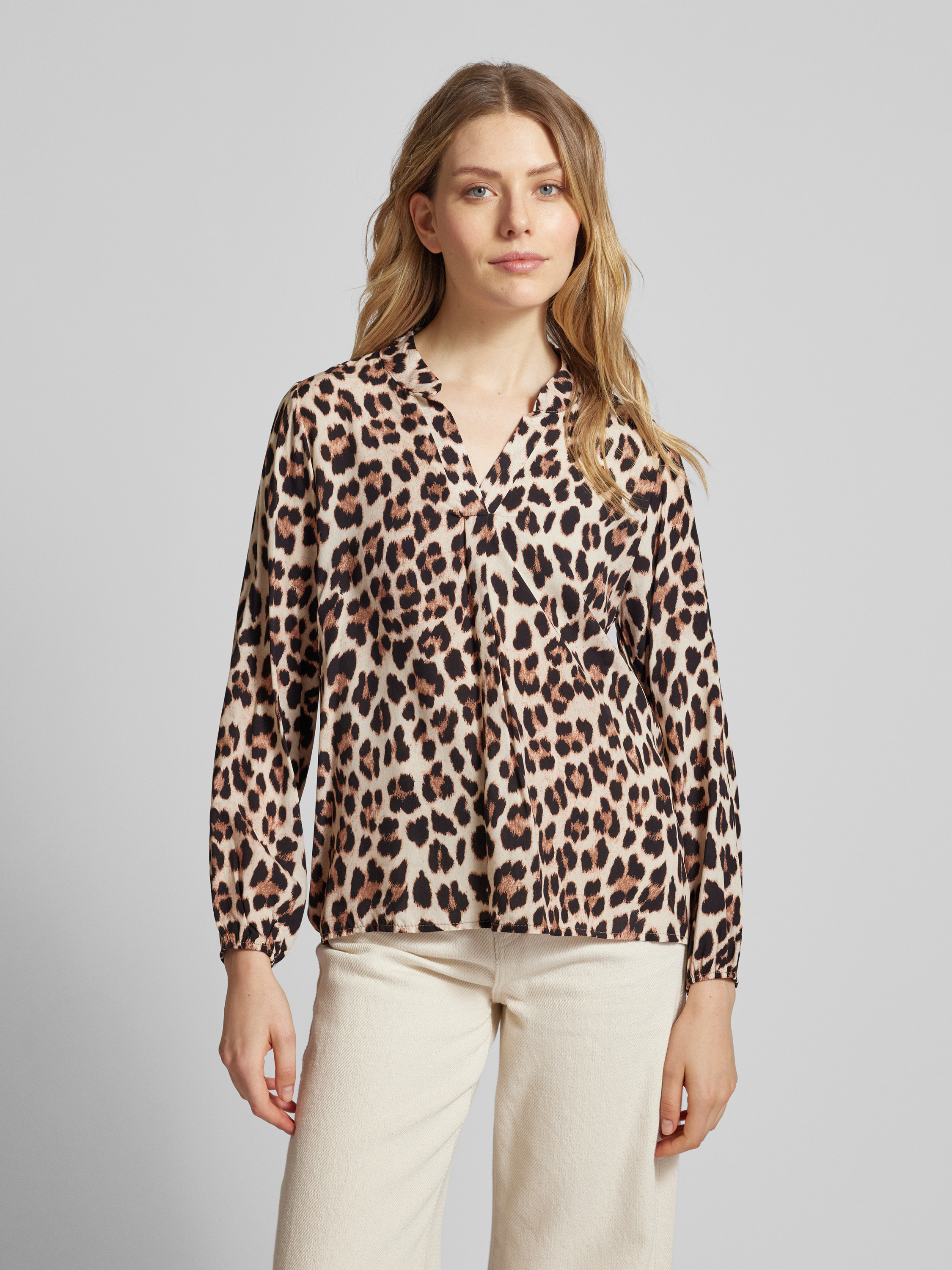 Regular fit blouse met V-hals, model 'BE44A' in beige
