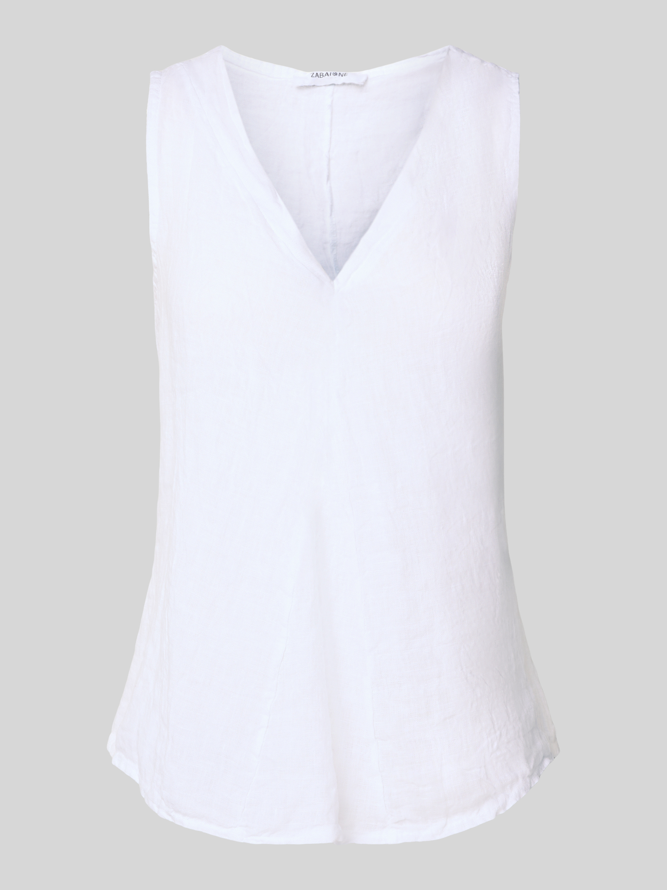 Regular fit linnen blousetop met V-hals, model 'Lu44cia' in offwhite
