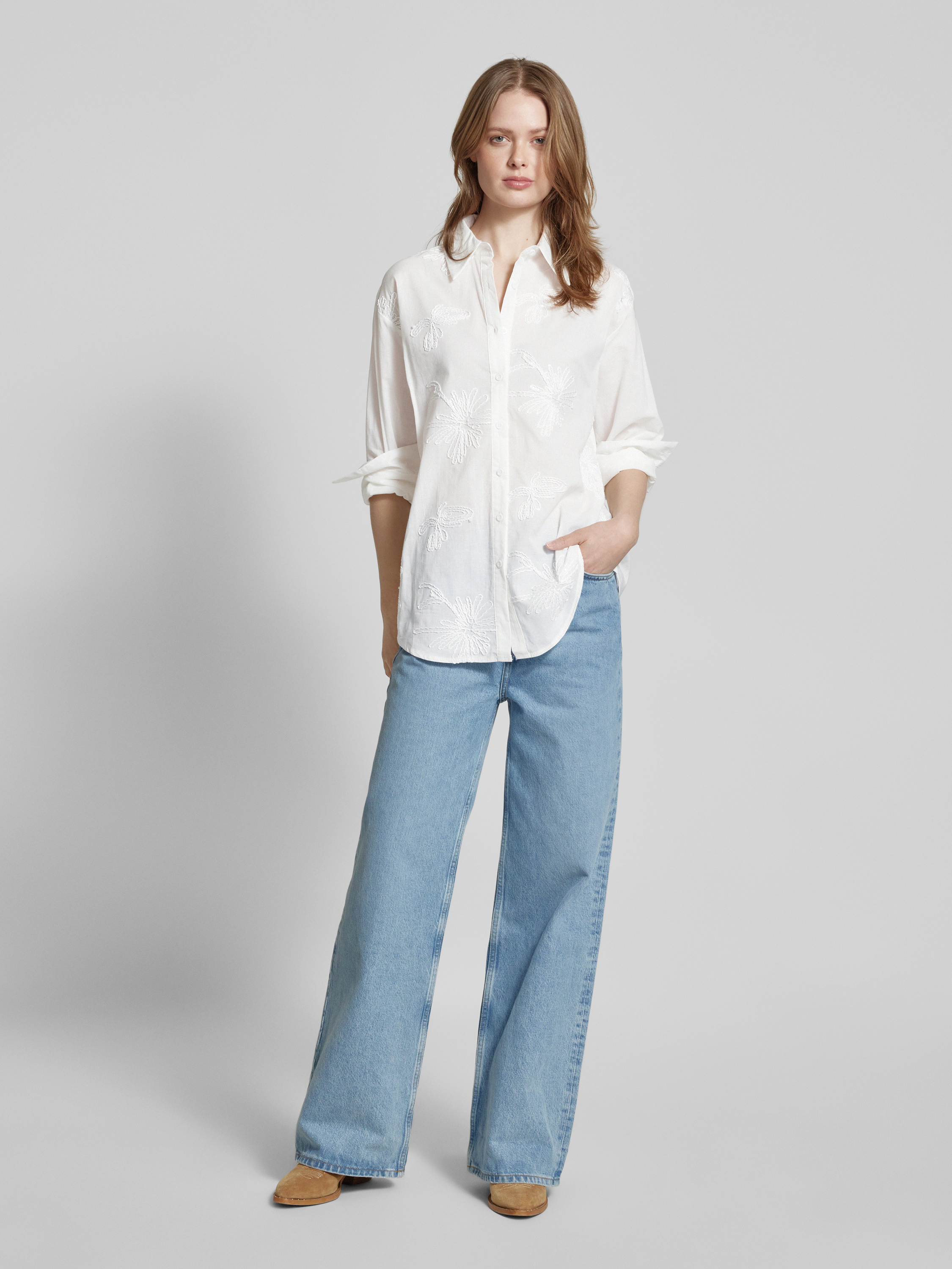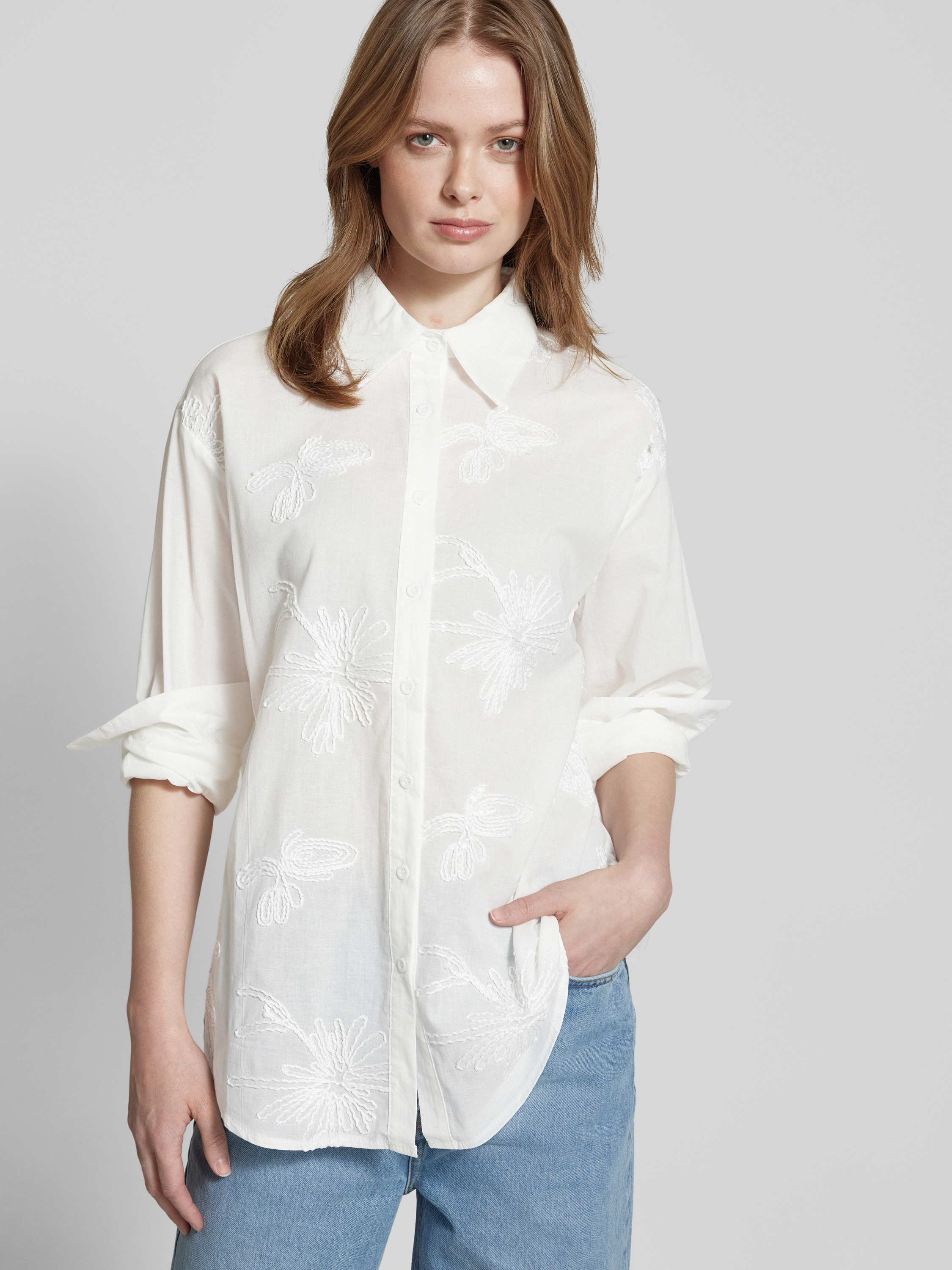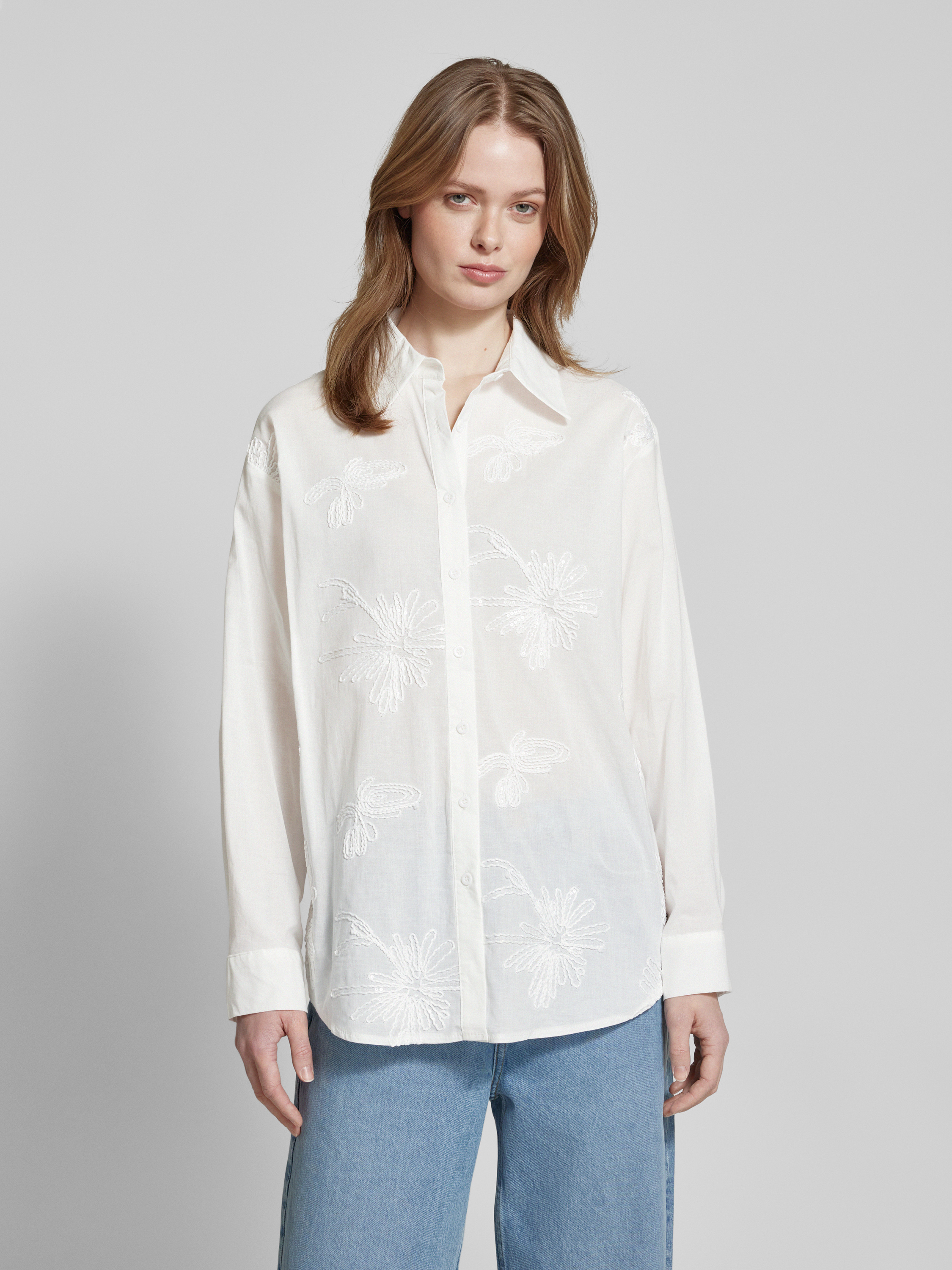 Regular fit overhemdblouse met pailletten, model 'Am44ber' in wit
