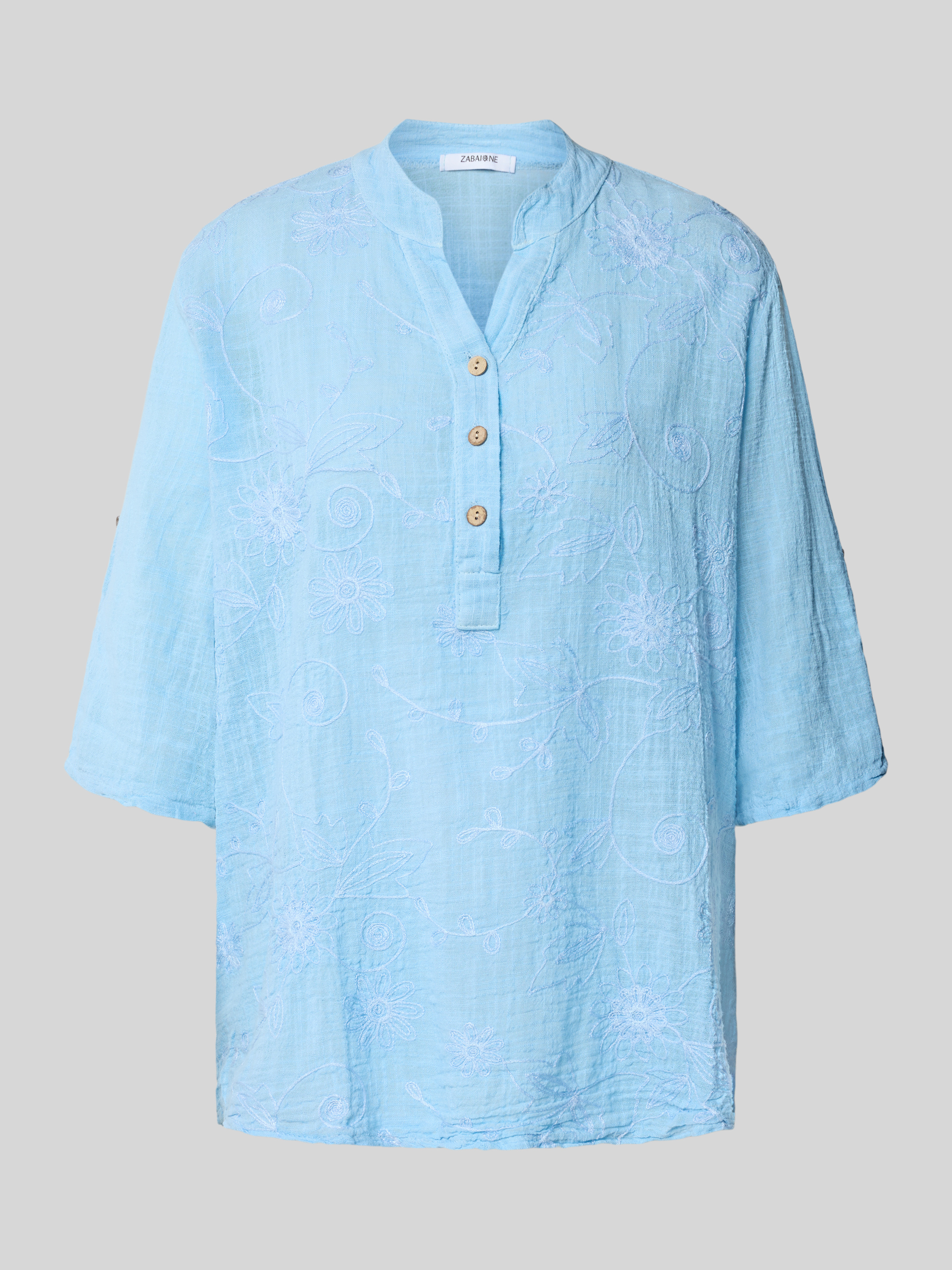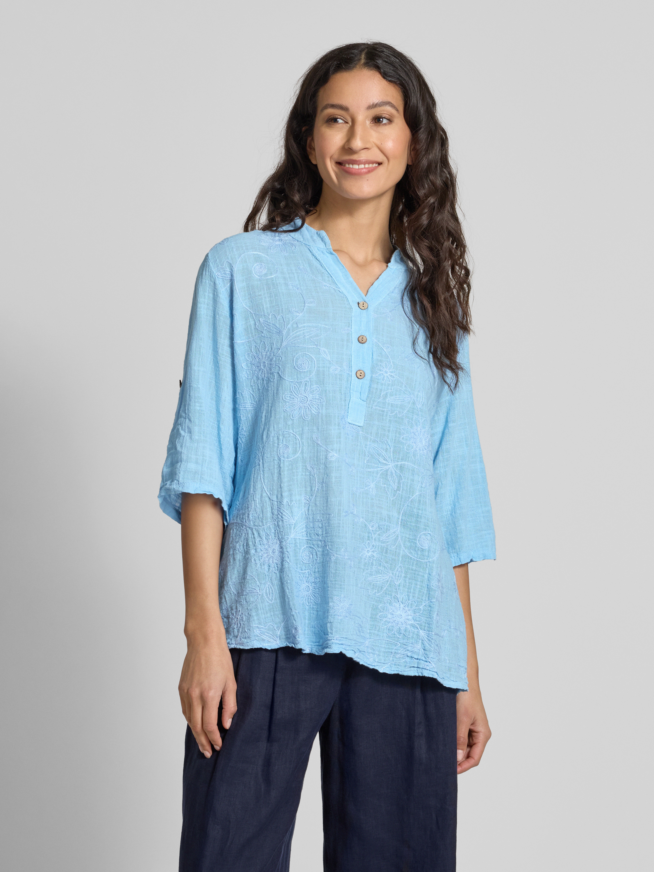 Relaxed fit blouse met kant, model 'Li' in blauw gemêleerd
