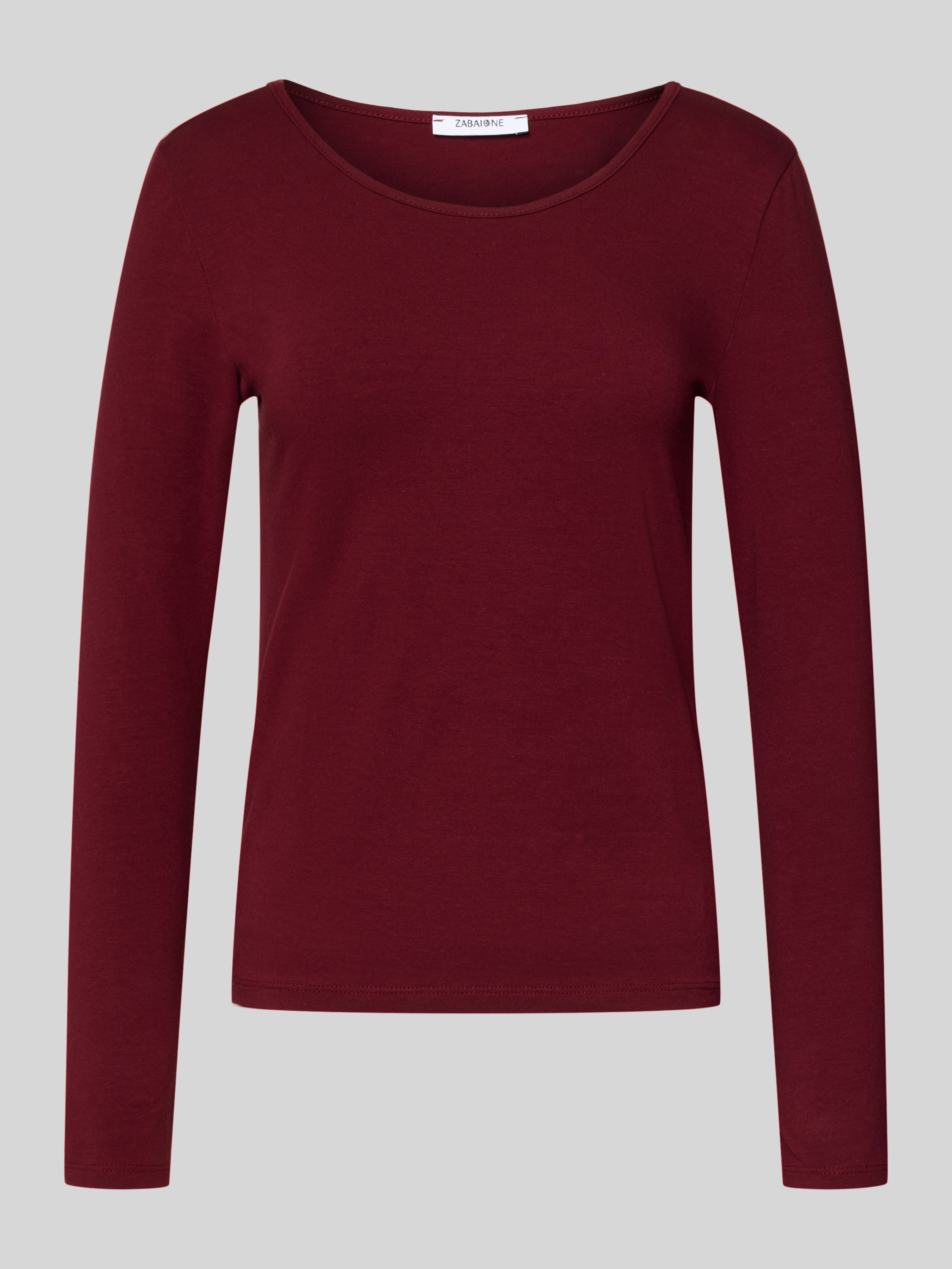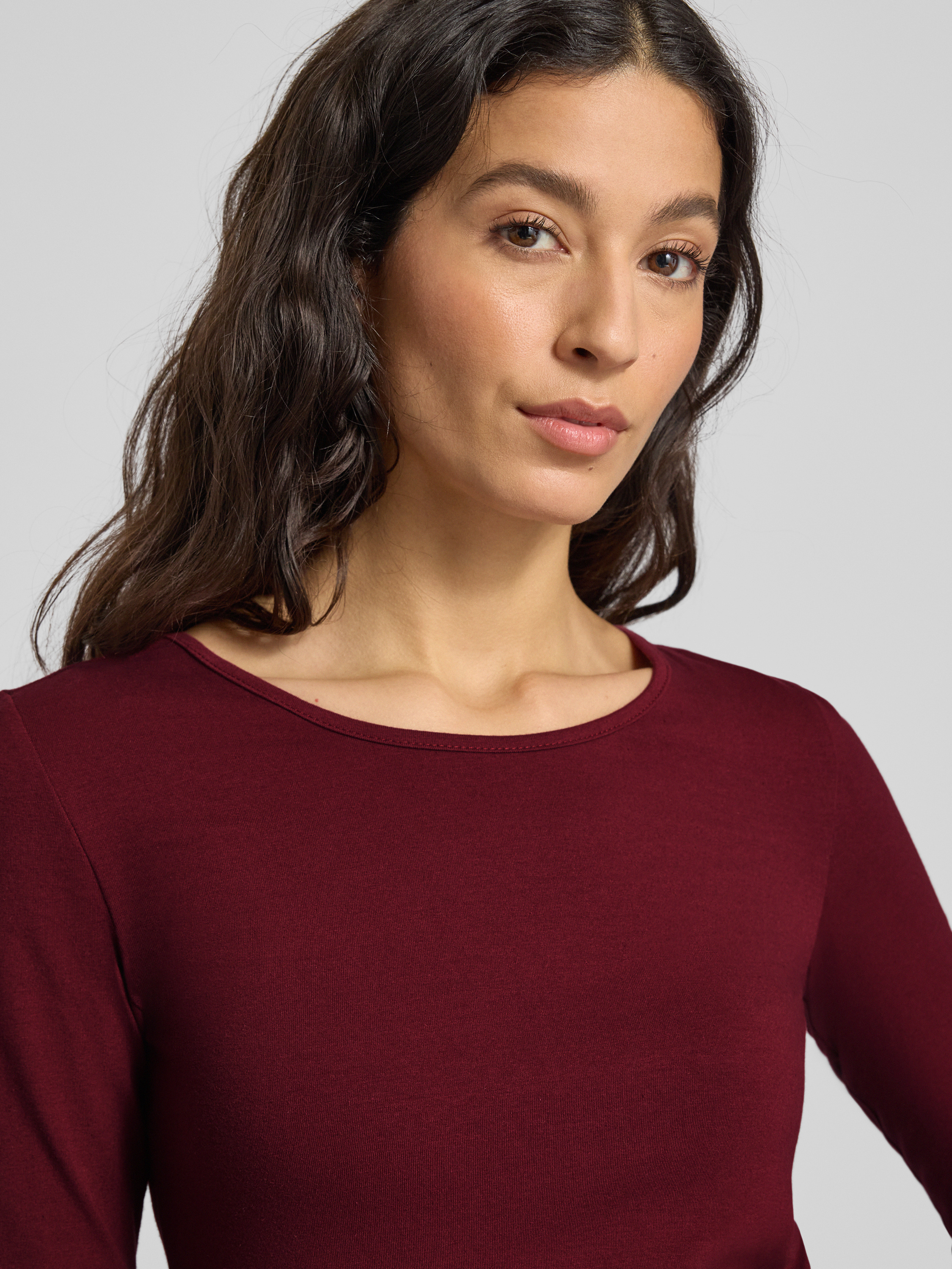Shirt met lange mouwen en geribde ronde hals in bordeaux
