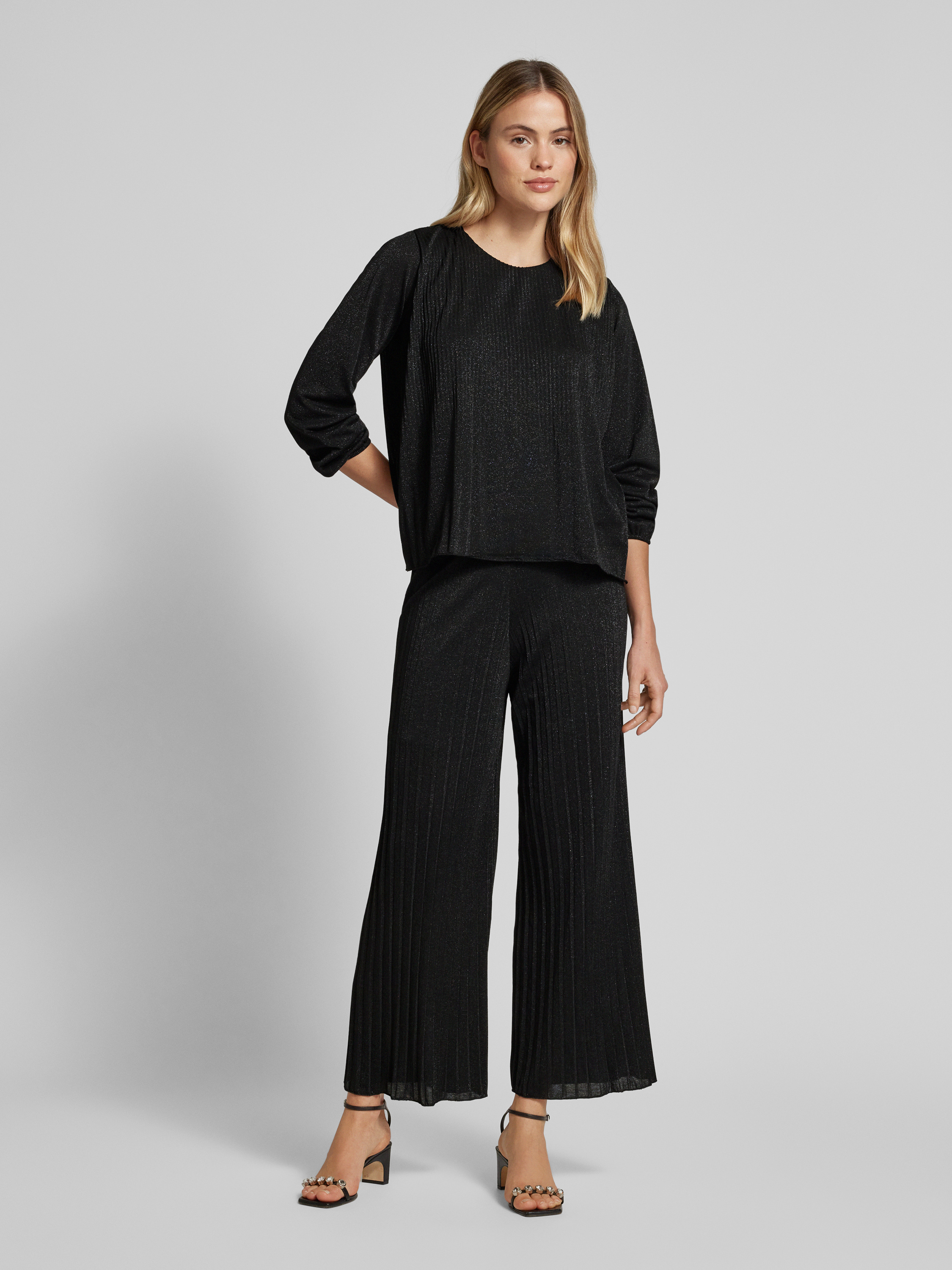 Stoffen broek met verkorte pasvorm in zwart
