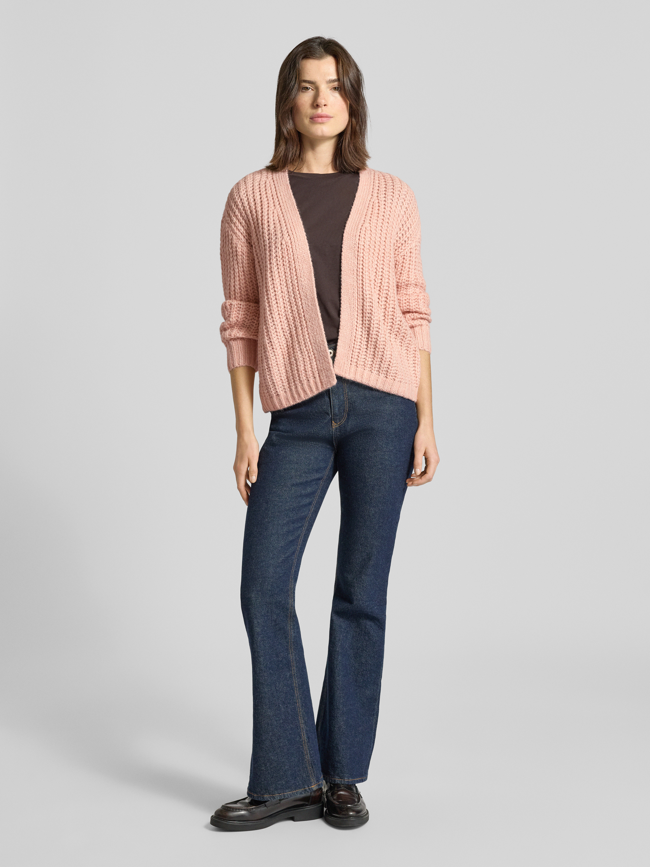 Cardigan met ontspannen pasvorm in open vorm in abrikoos