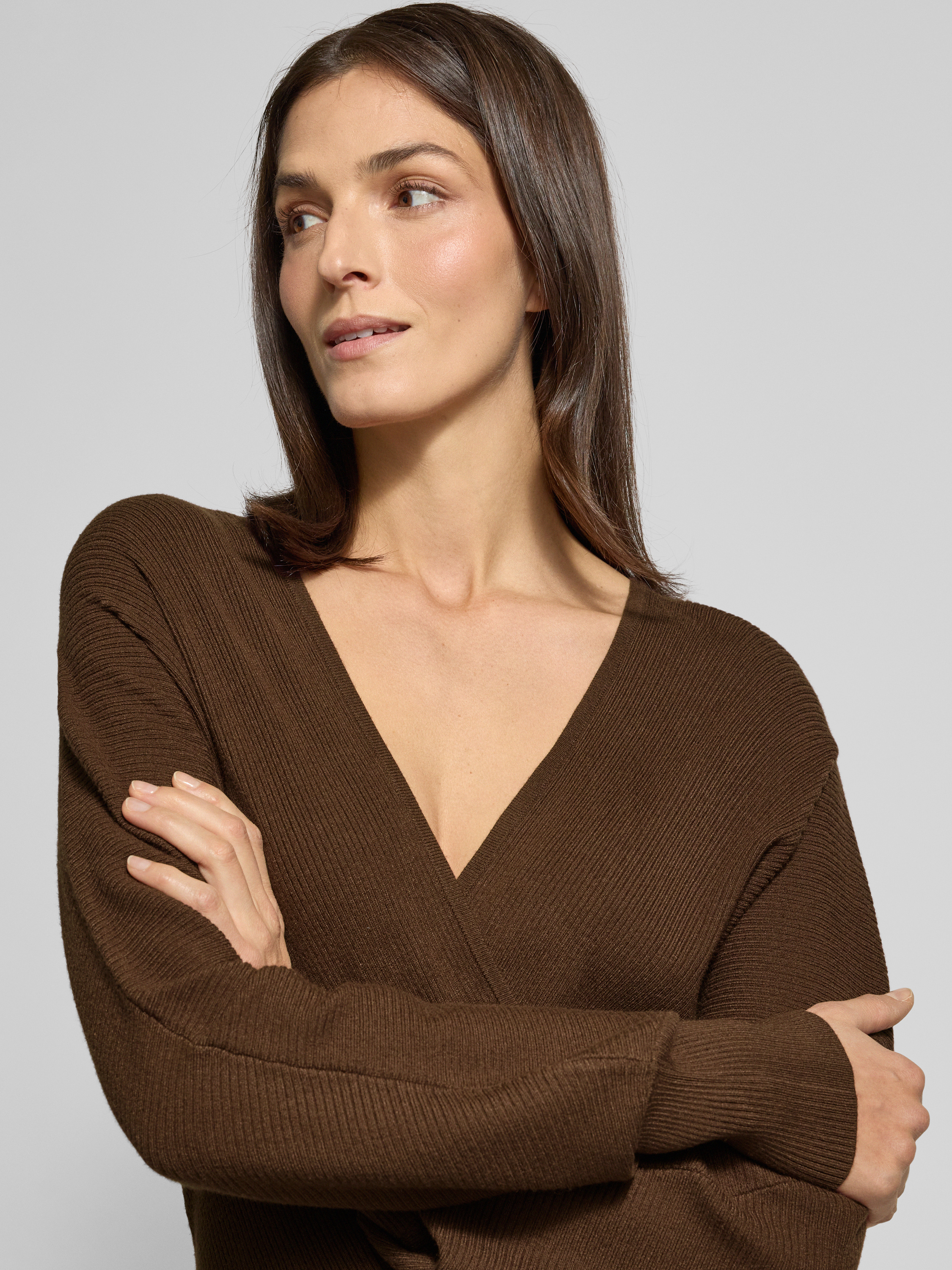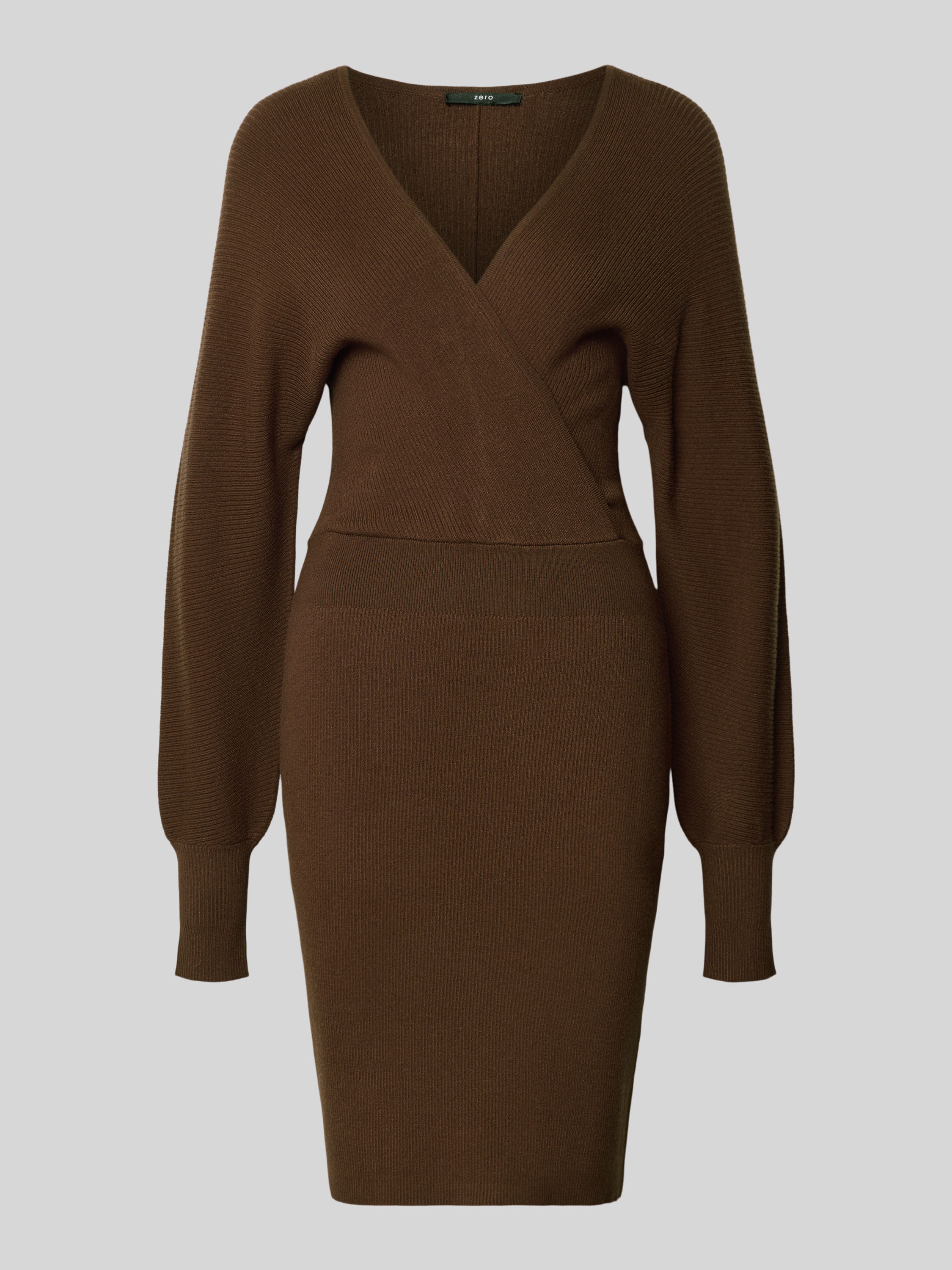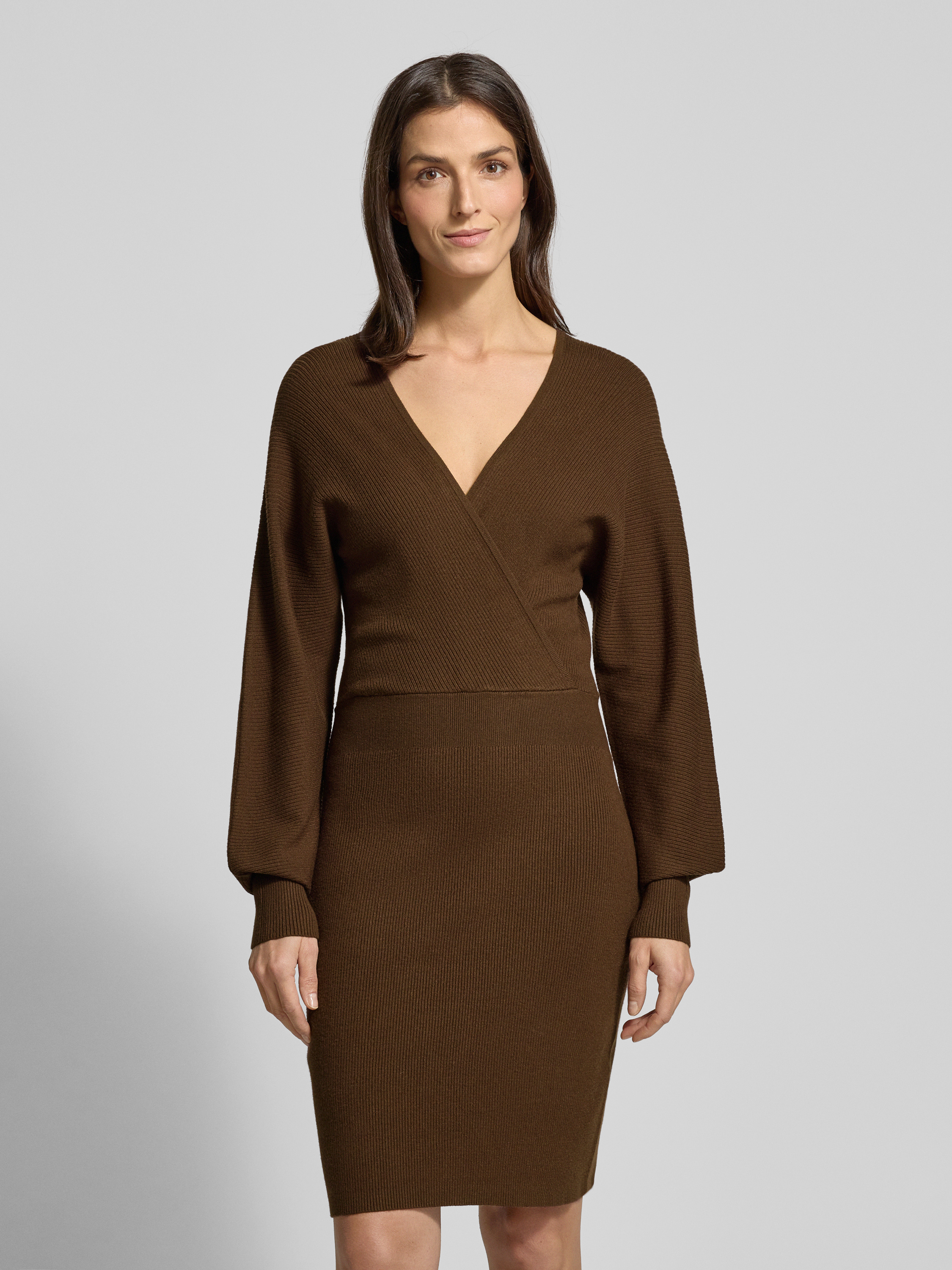 Knielange gebreide jurk van viscosemix in lichtbruin