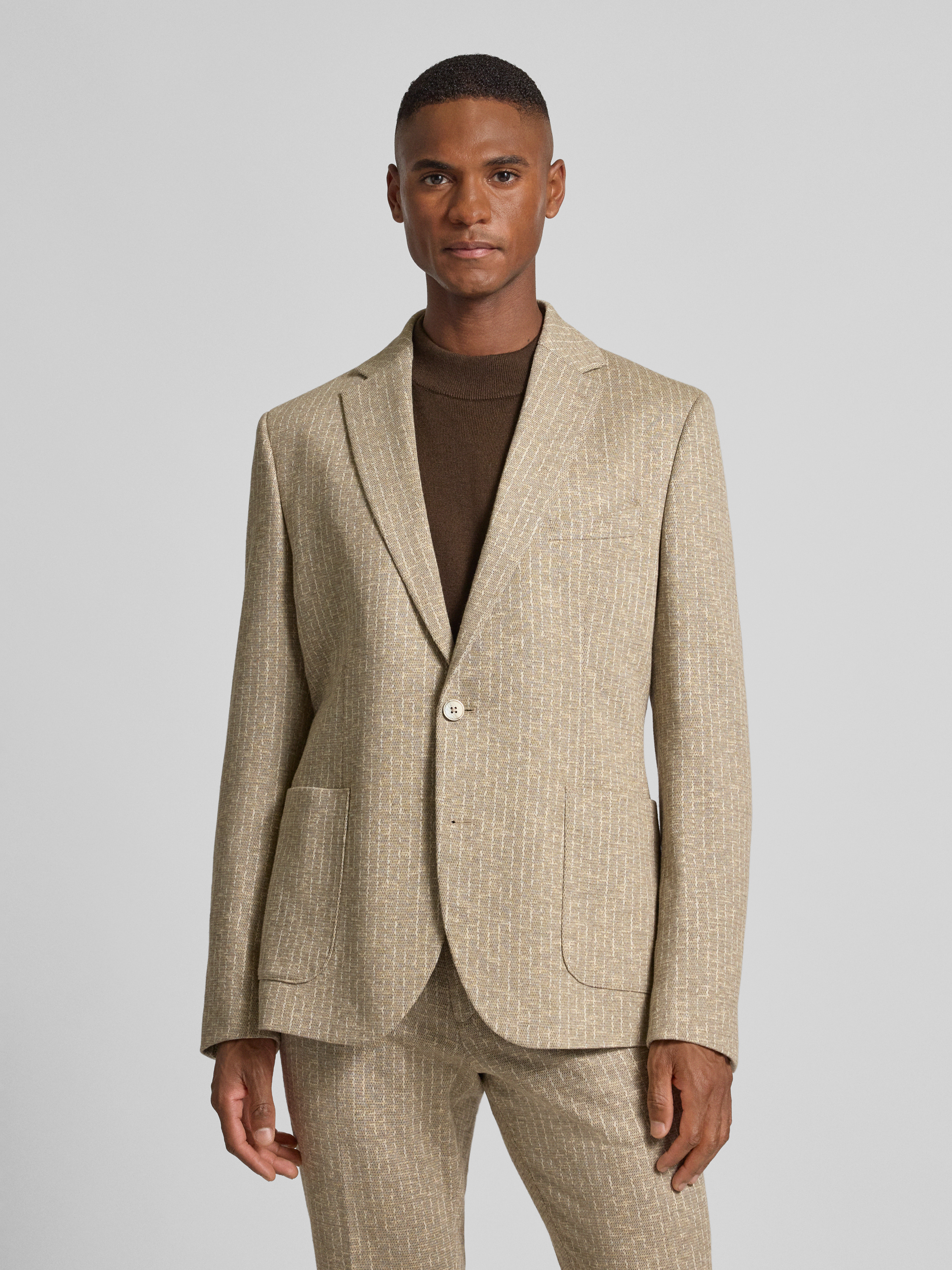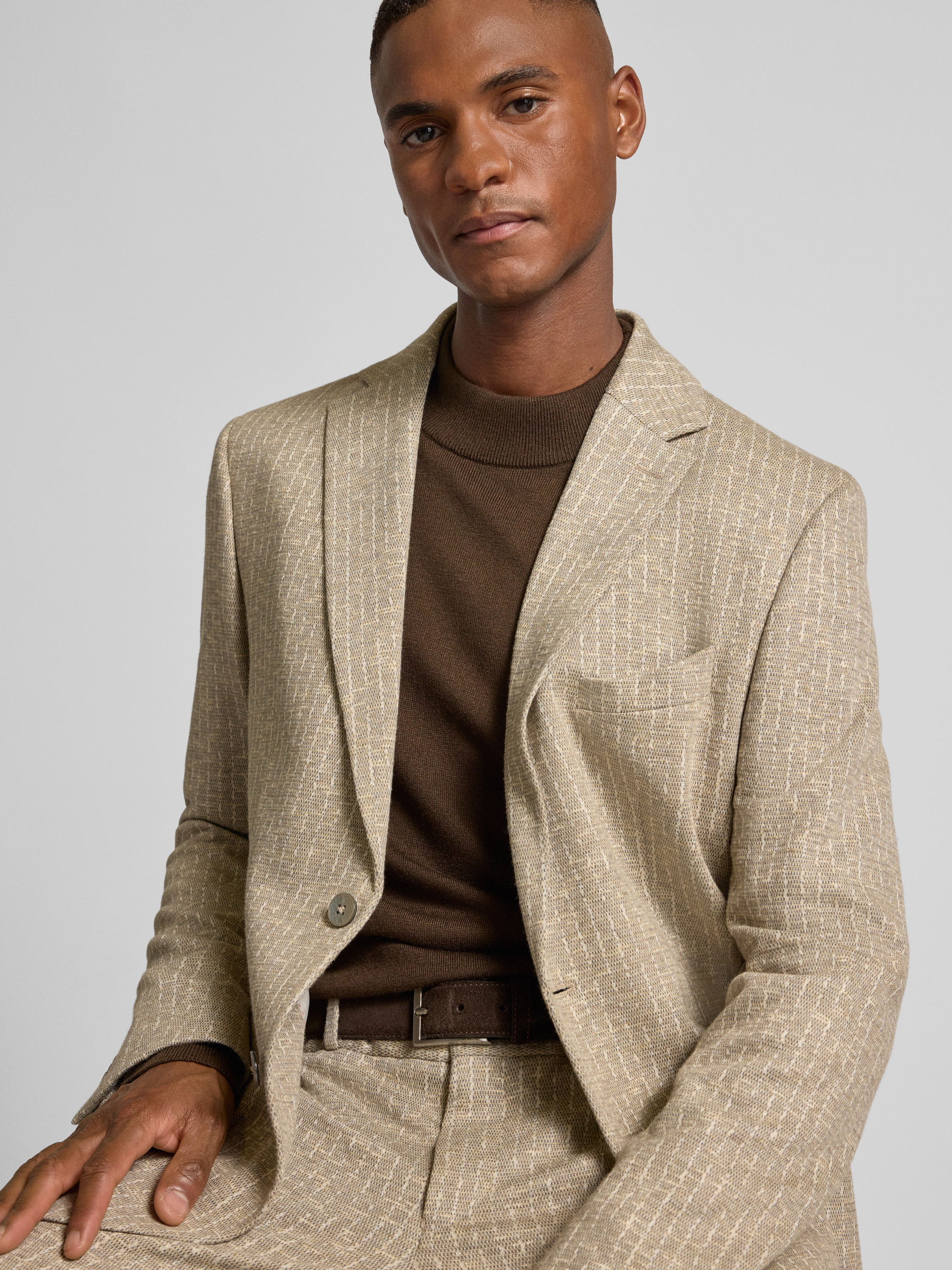 2-knoops colbert met linnen in beige