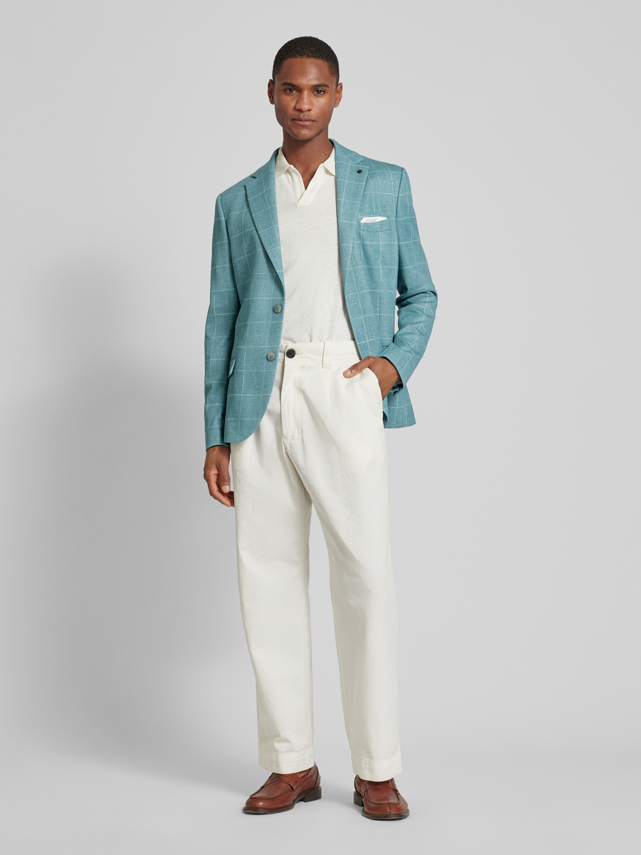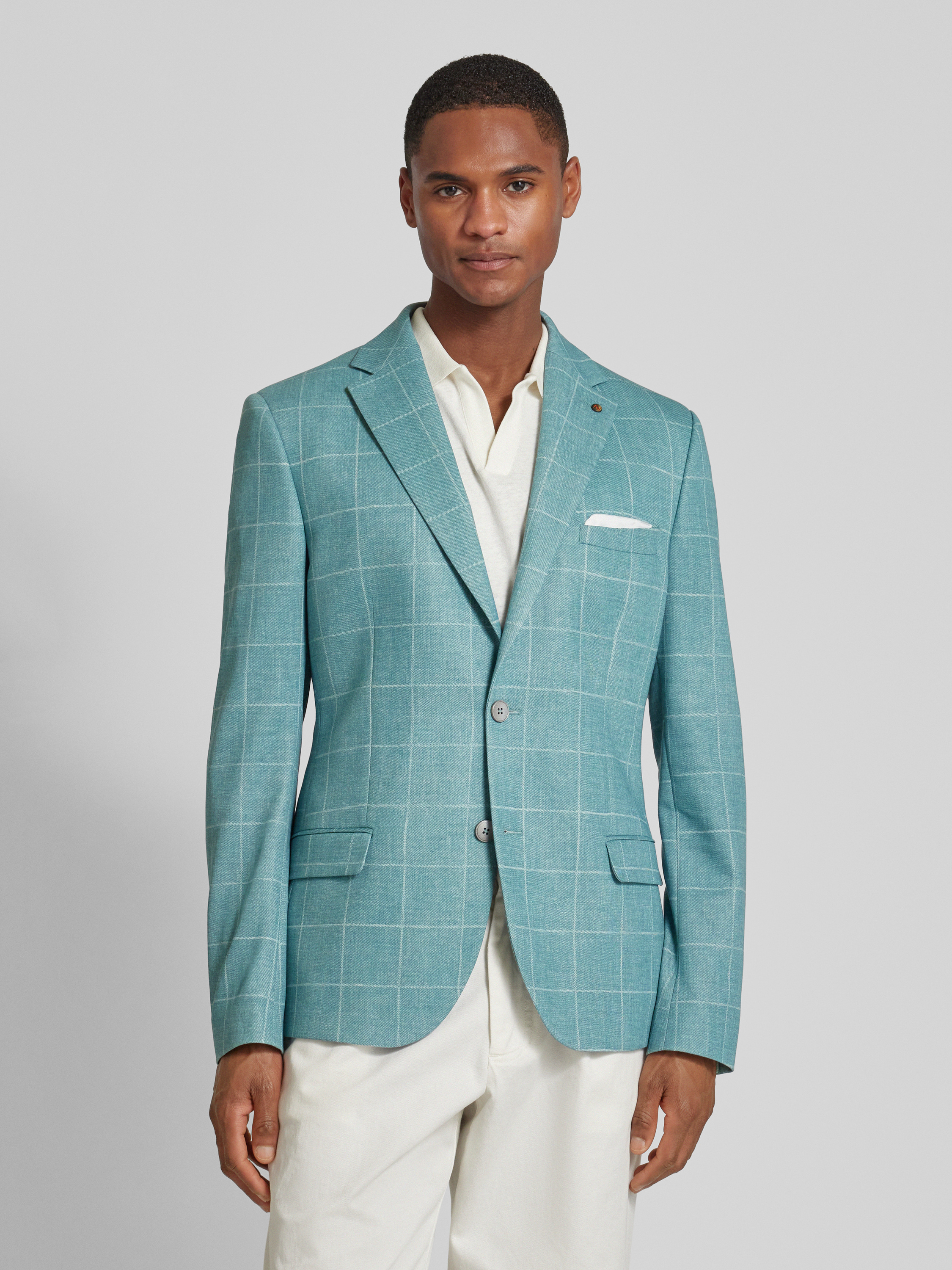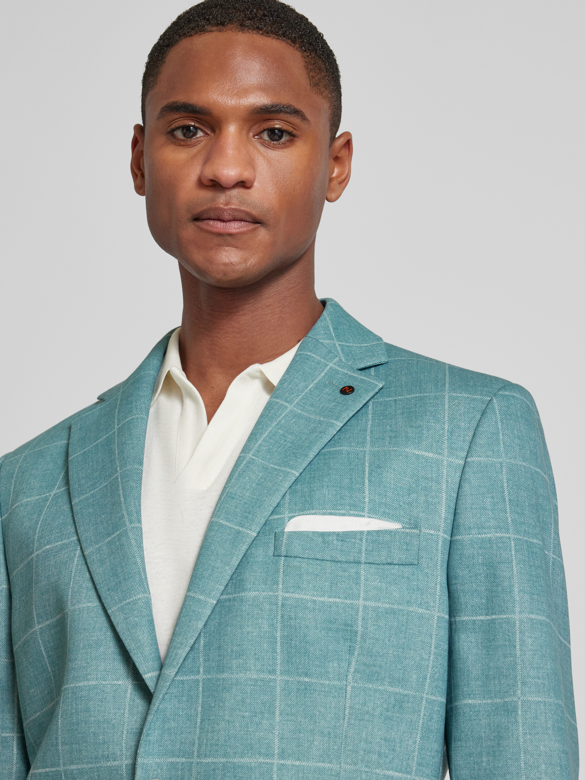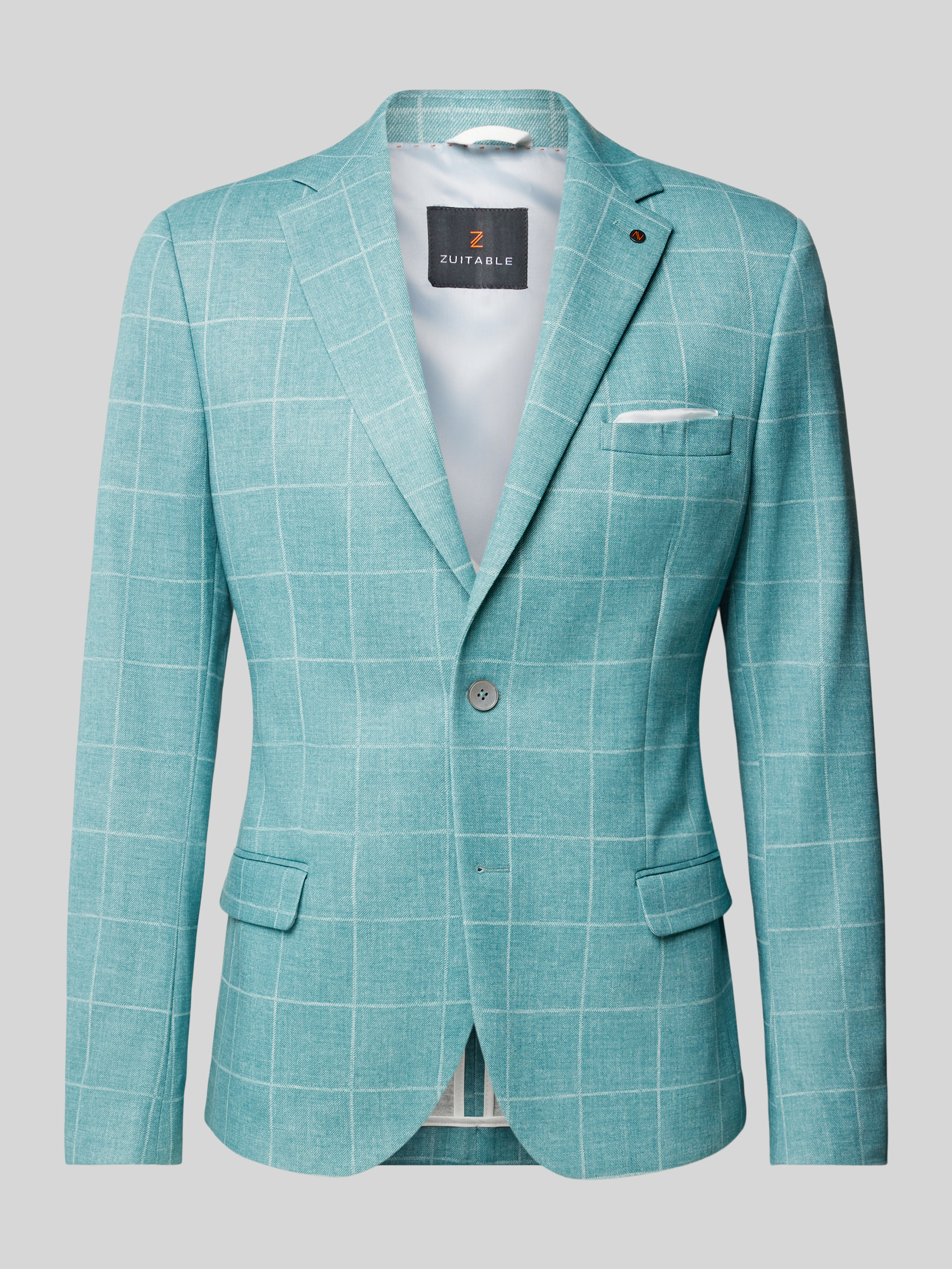 ZuitableColbert met rasterruit en klepzakken in mintgroen