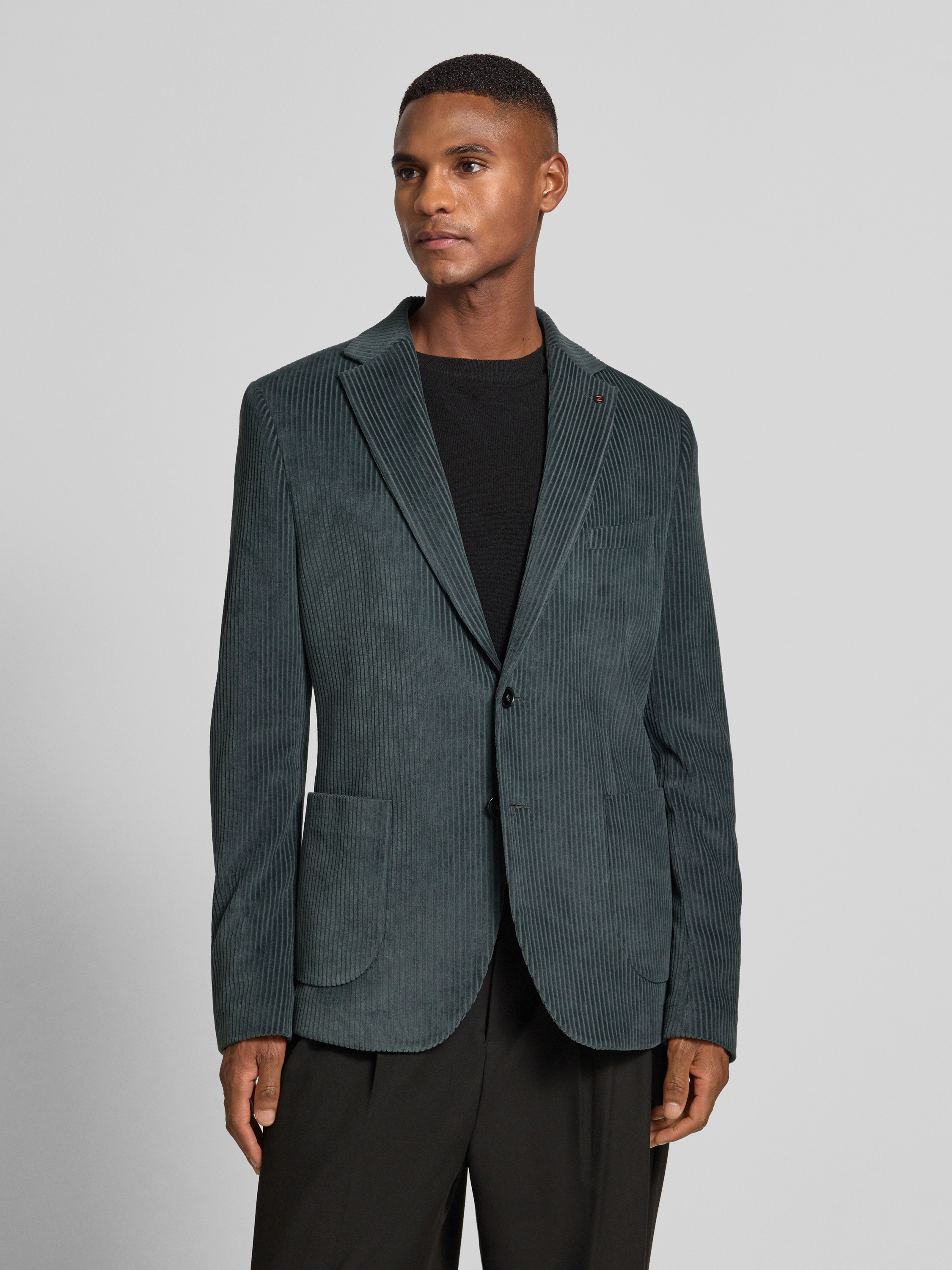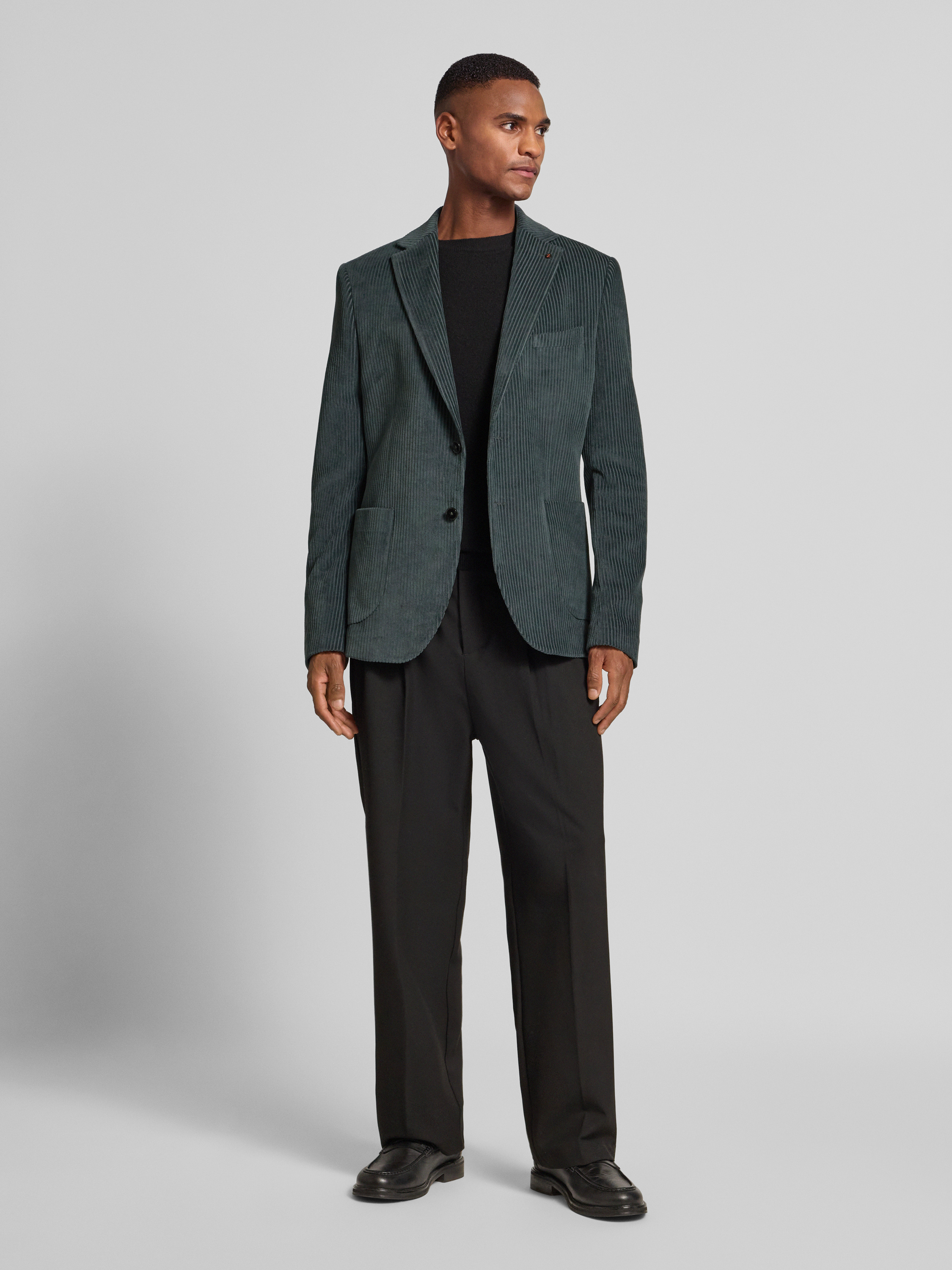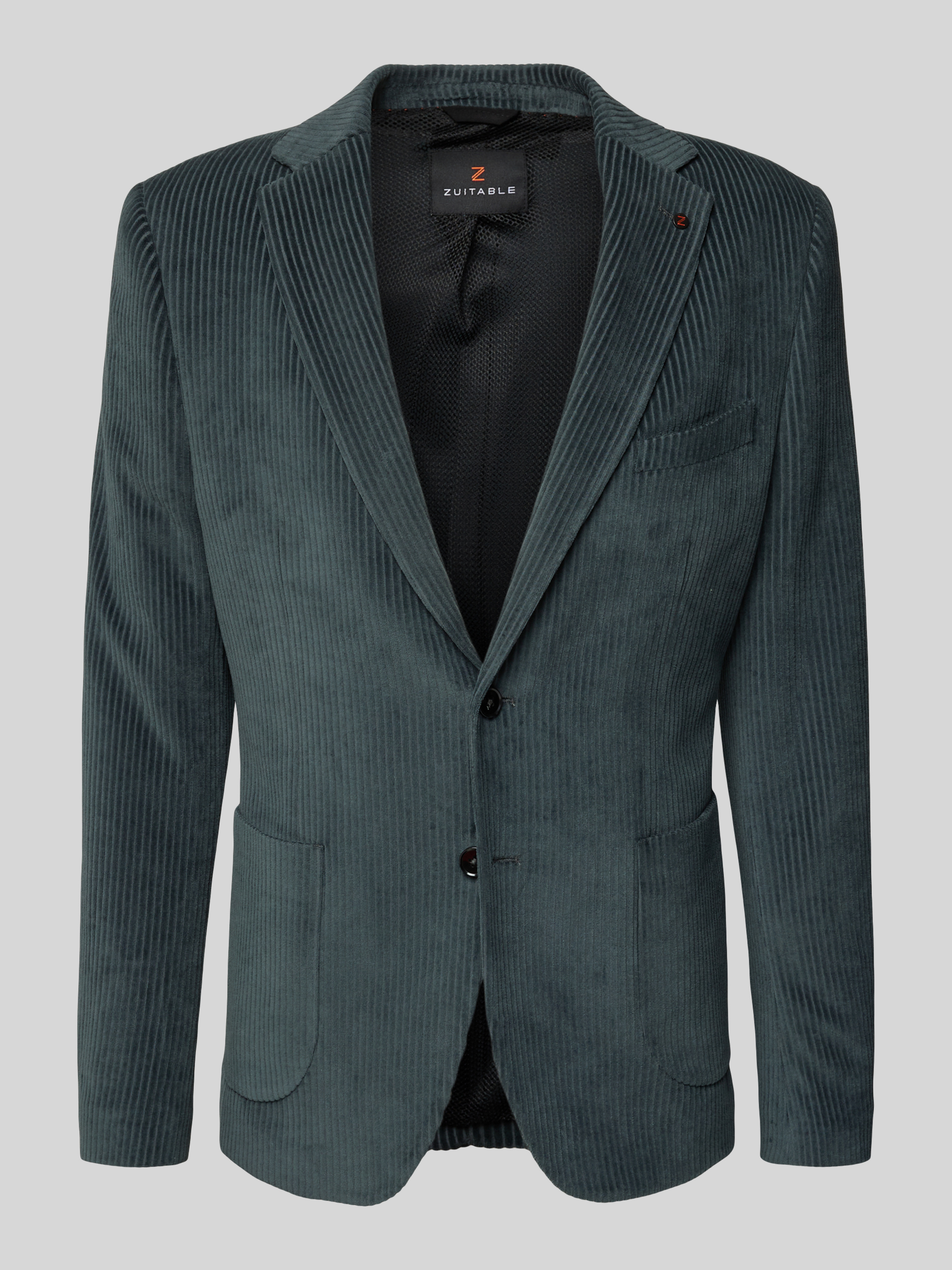ZuitableSlim fit 2-knoops colbert van corduroy met reverskraag in petrol